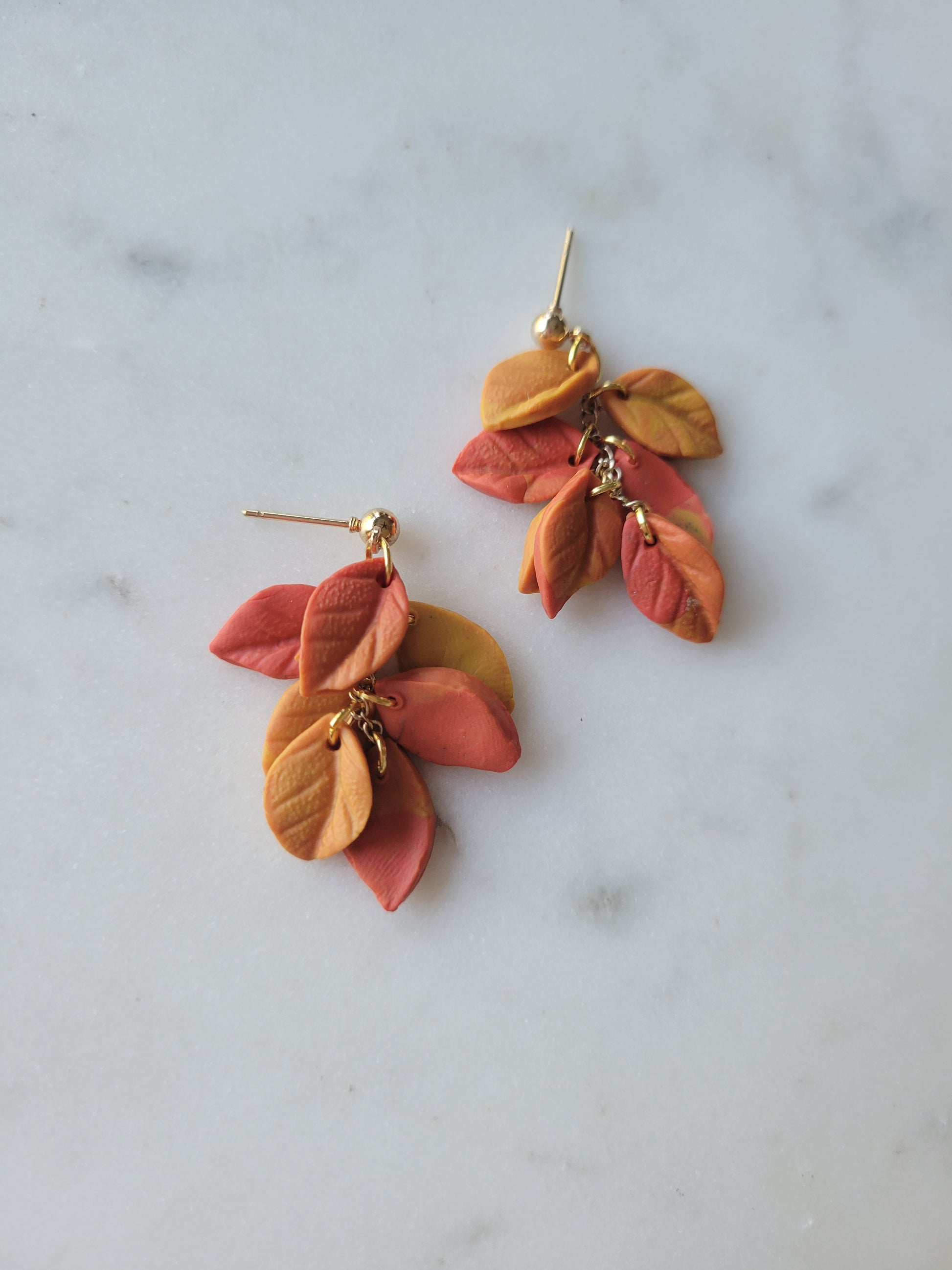 Addi : Autumn Leaf Drop Earrings : Yellow/Orange