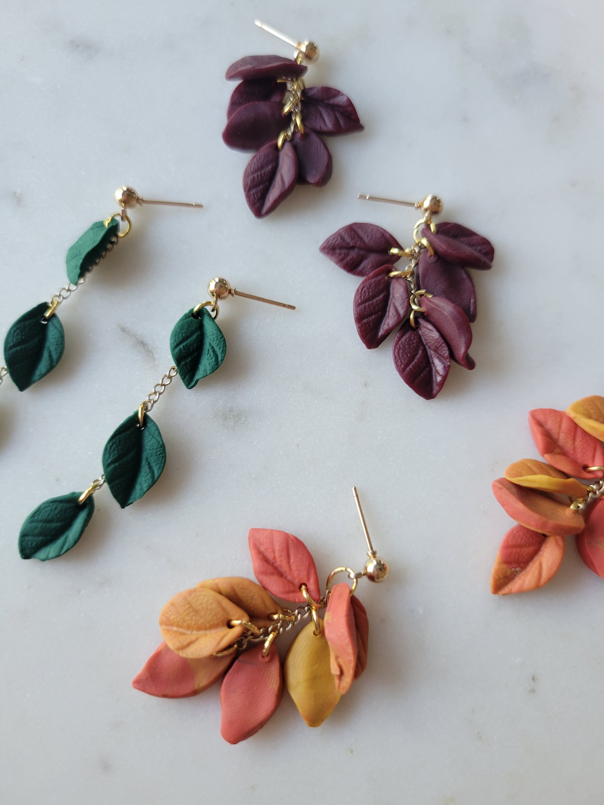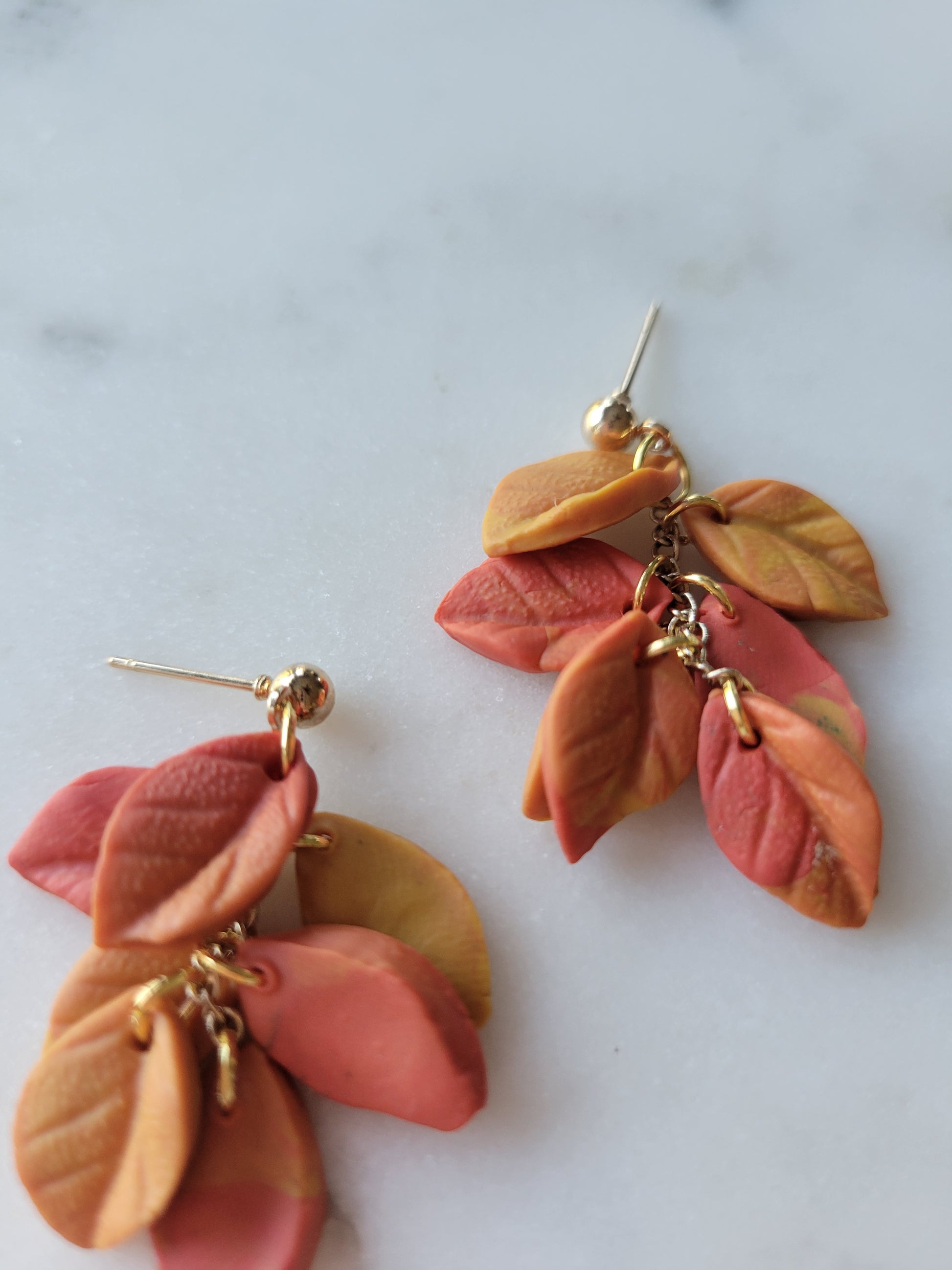 This style is perfect for fall- medium sized, but bold, the individual leaves are textured and layered in these beautiful dangling earrings that move with you.