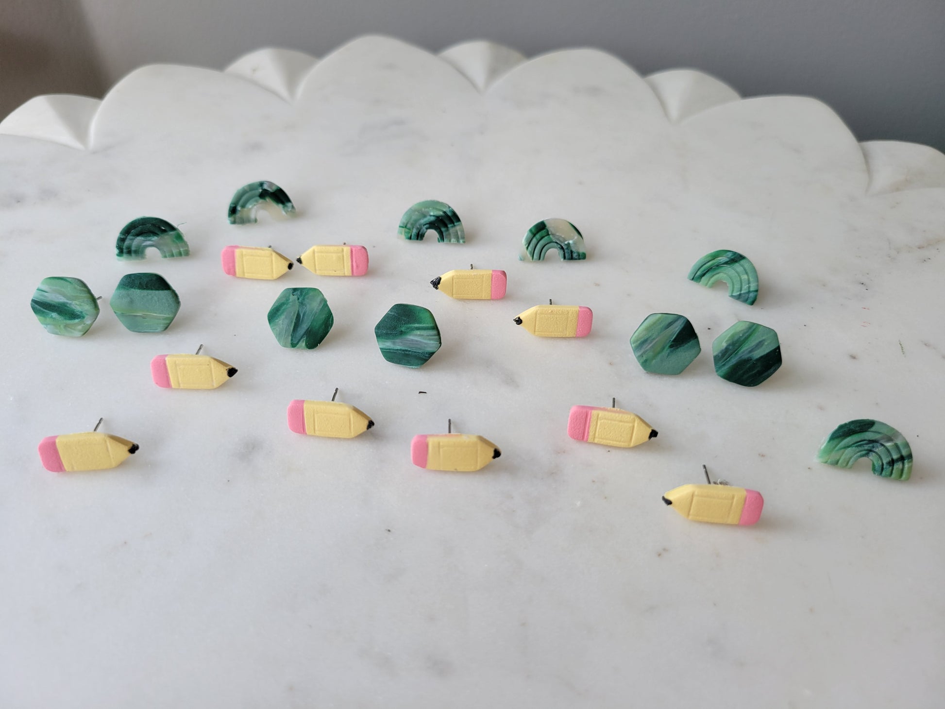 These handmade earrings are very lightweight and made of clay and nickle-free hardware.