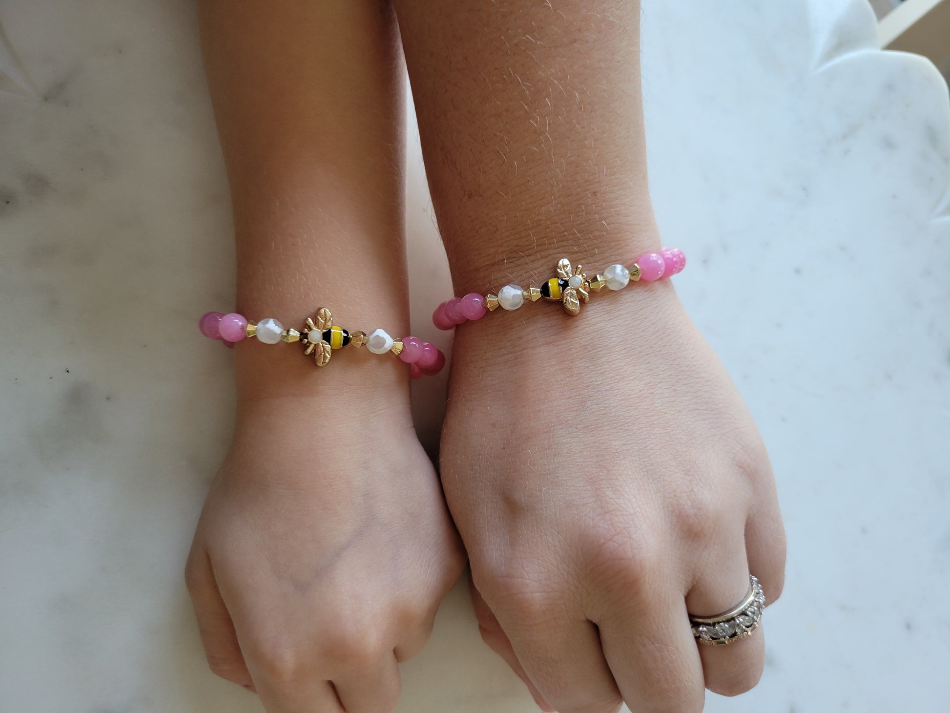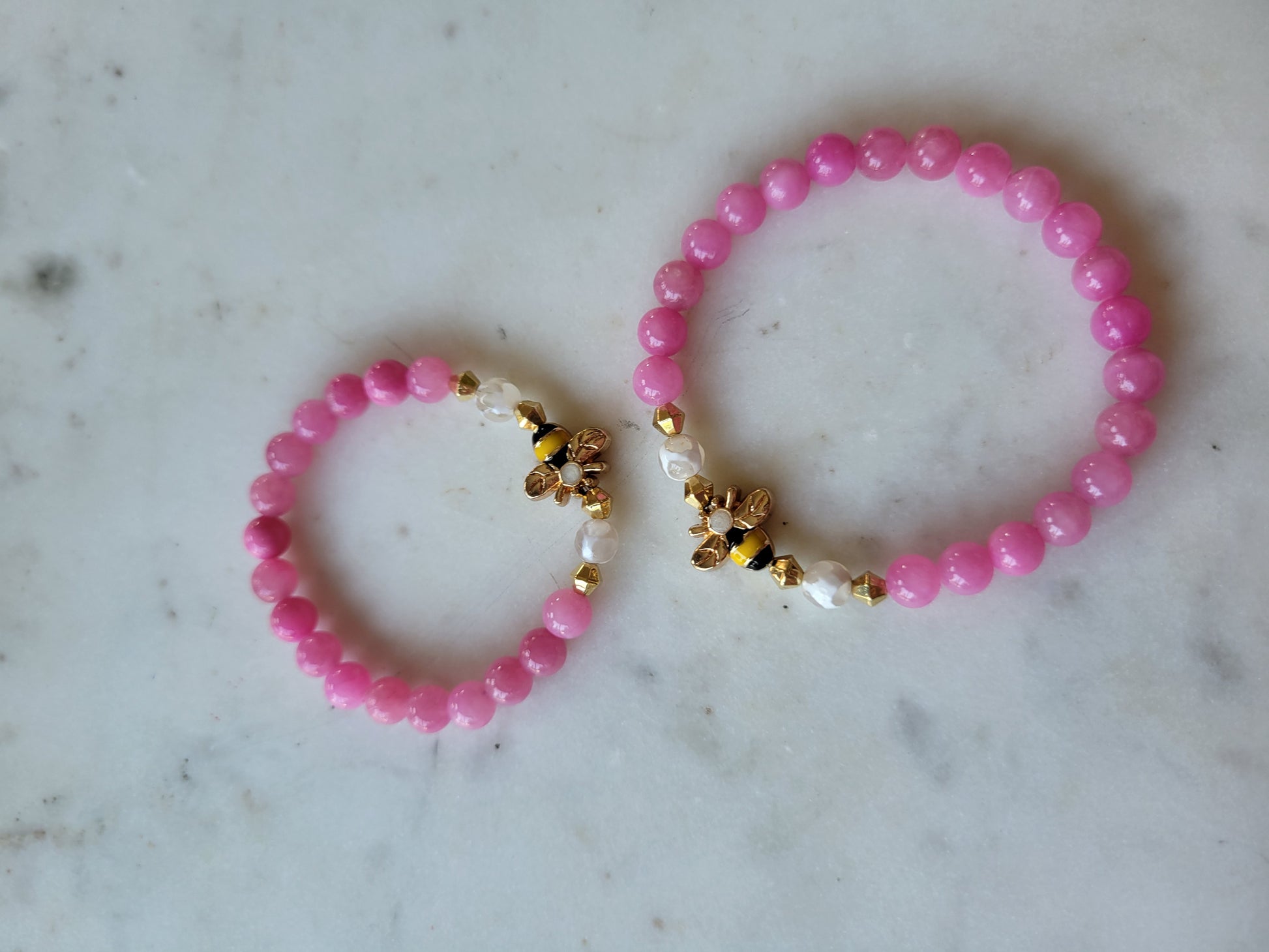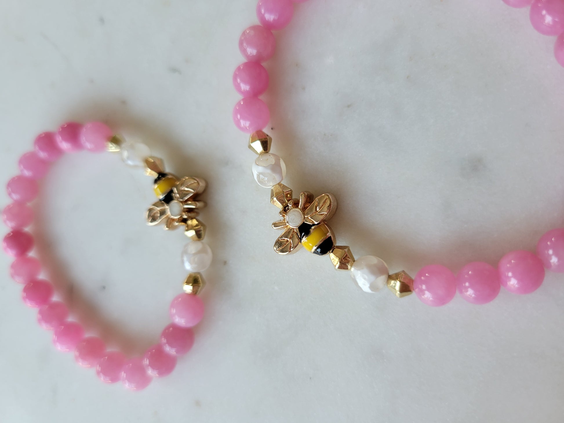 Bee & Pink Jade Beaded Bracelet