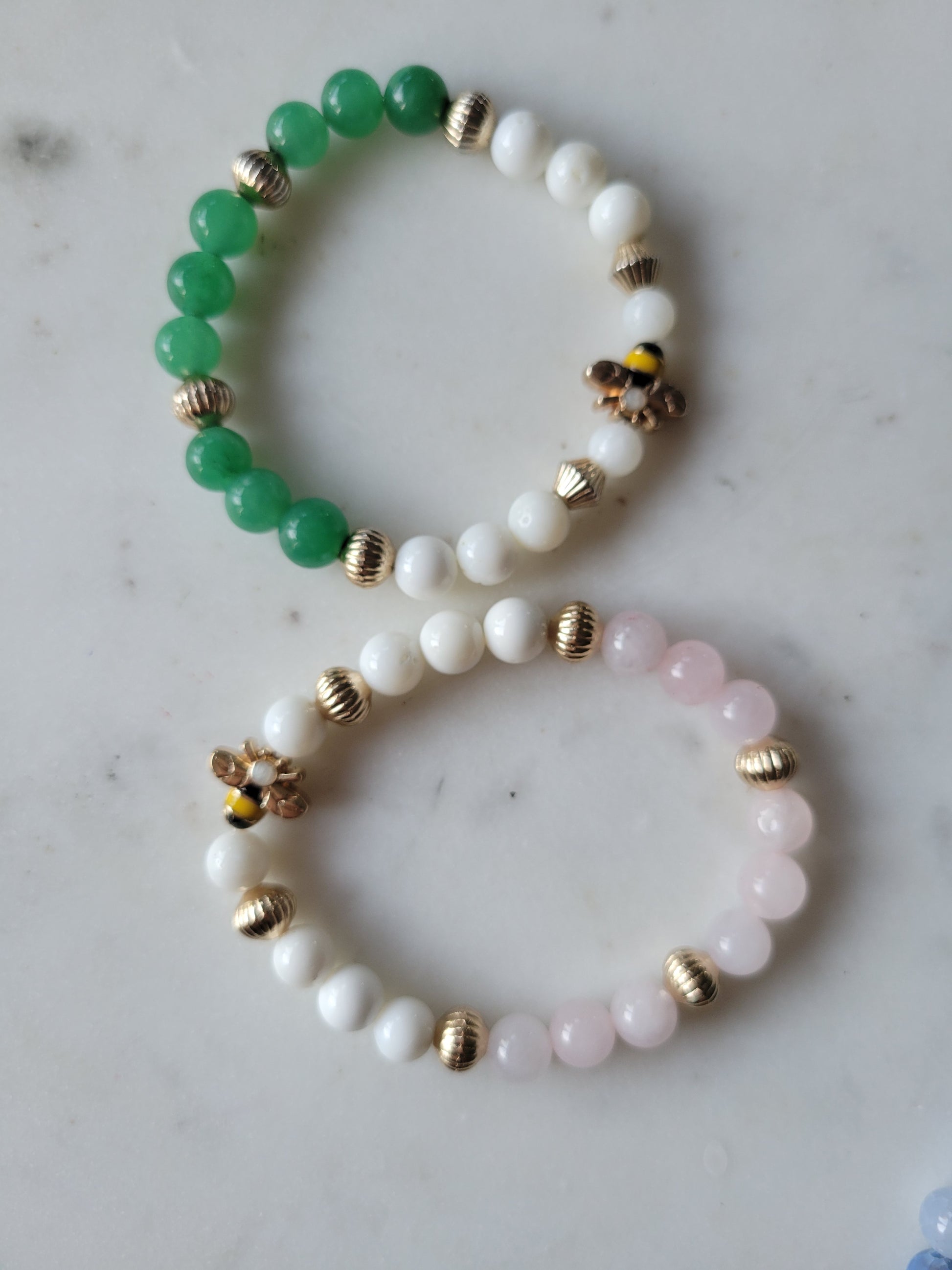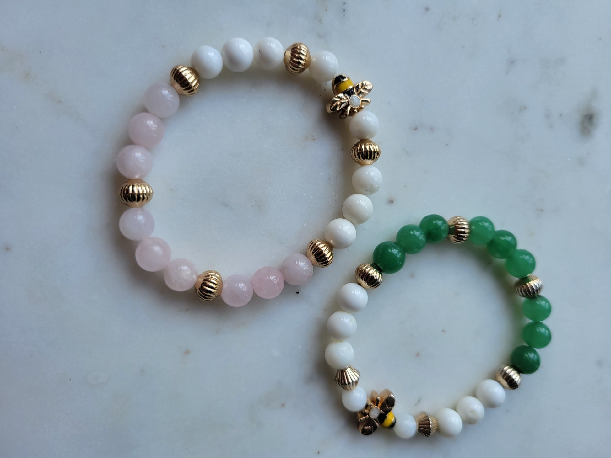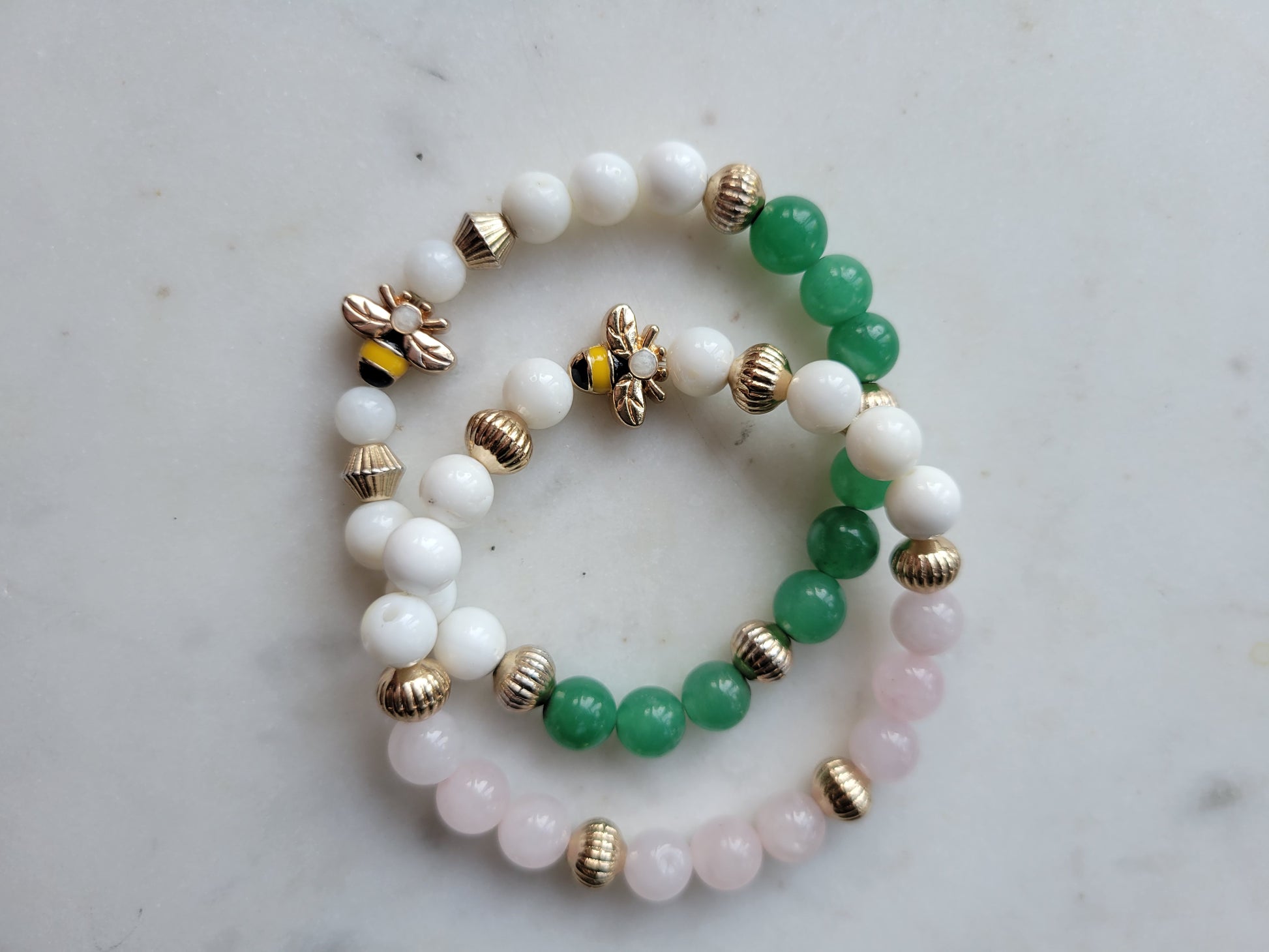 Bee Stack : Rose Quartz & Green Adventurine Bracelets (2)