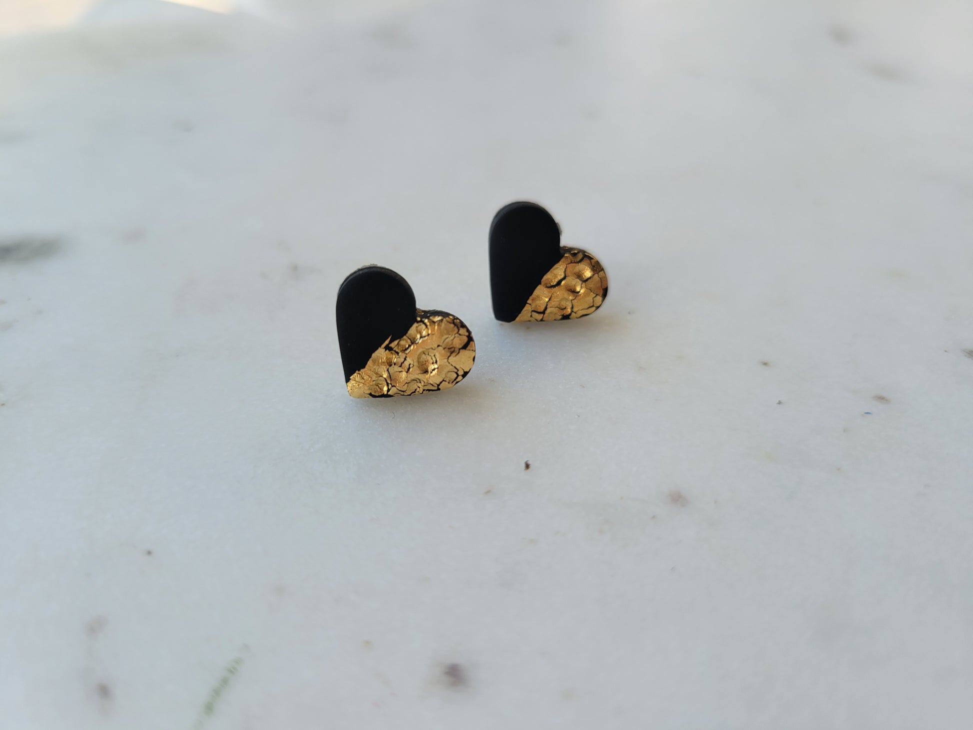 Black & Gold Heart Studs
