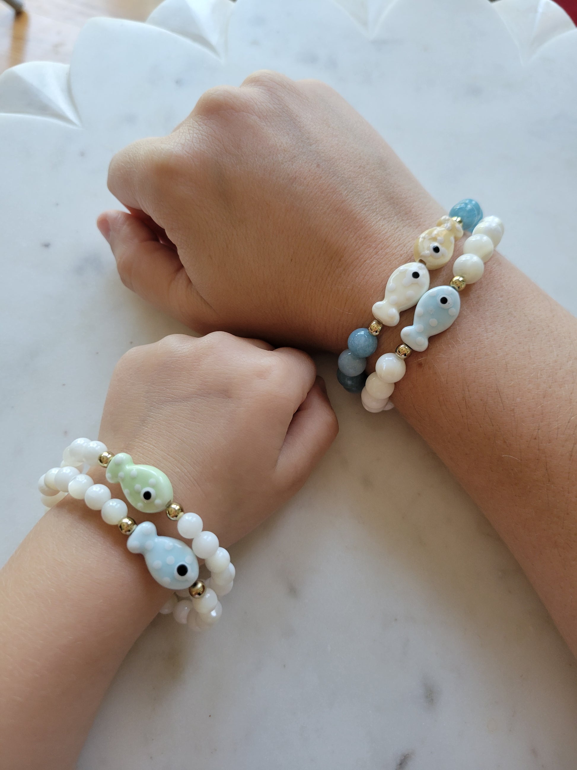 *Child's Size* Fish Beaded Bracelet: White Mother of Pearl