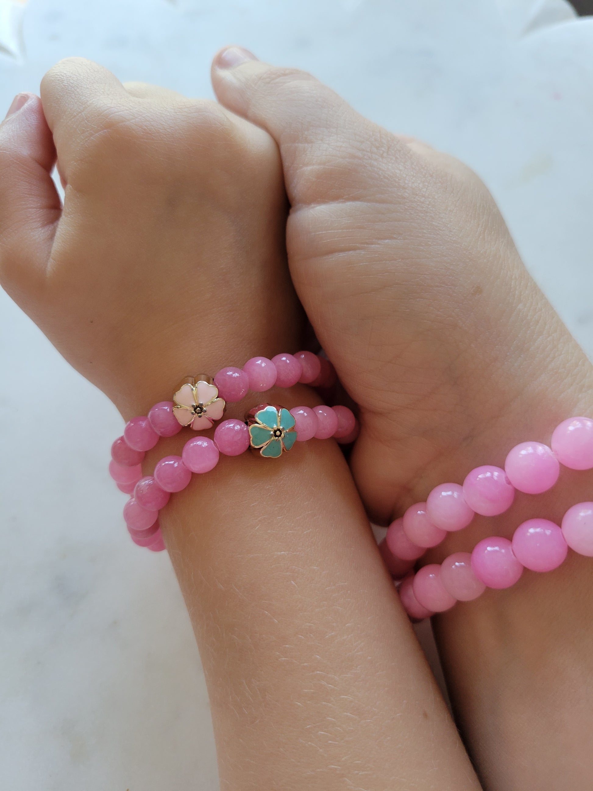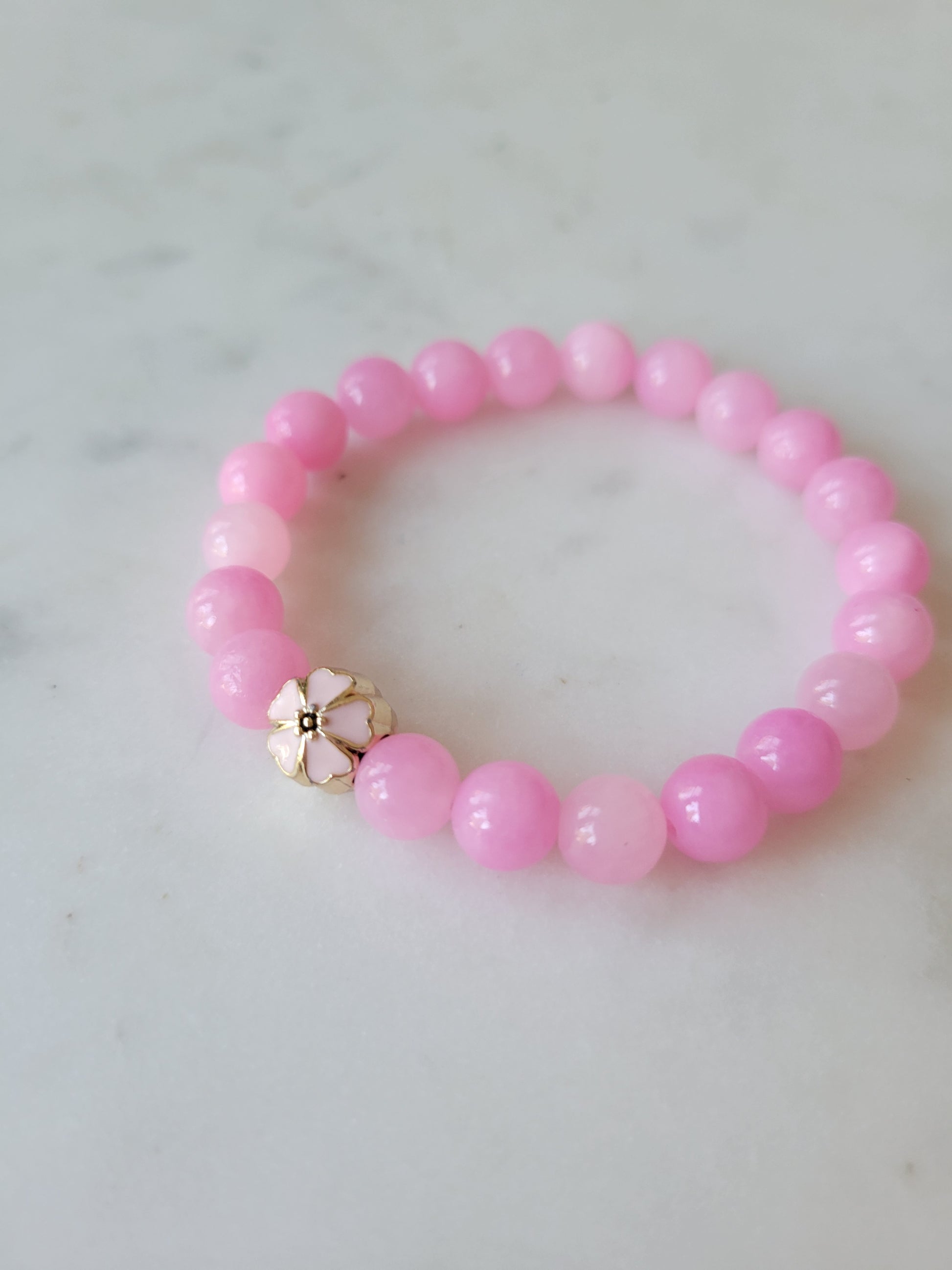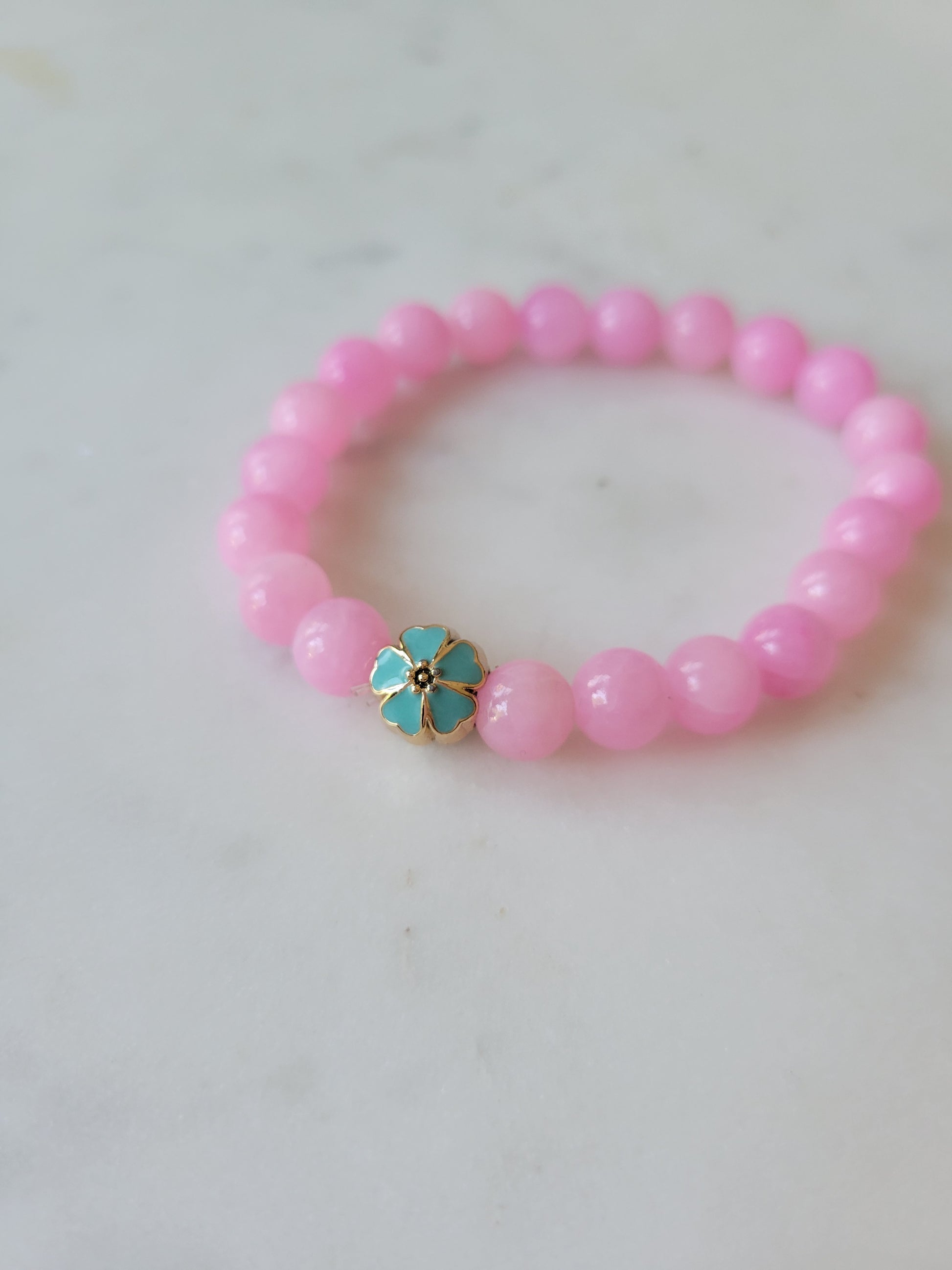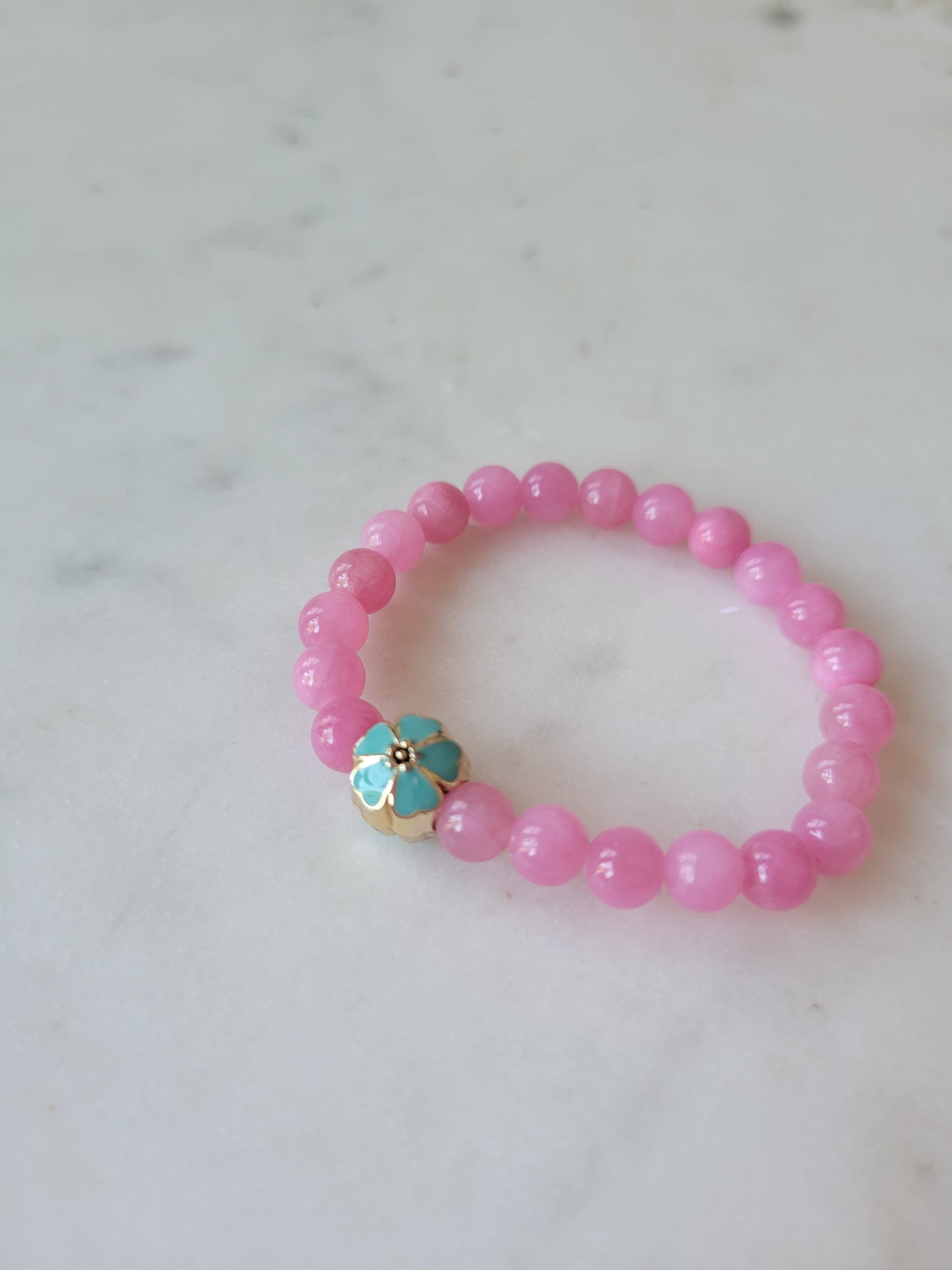 *Child's Size* Flower Child Stretchy Bracelet: Pink Jade