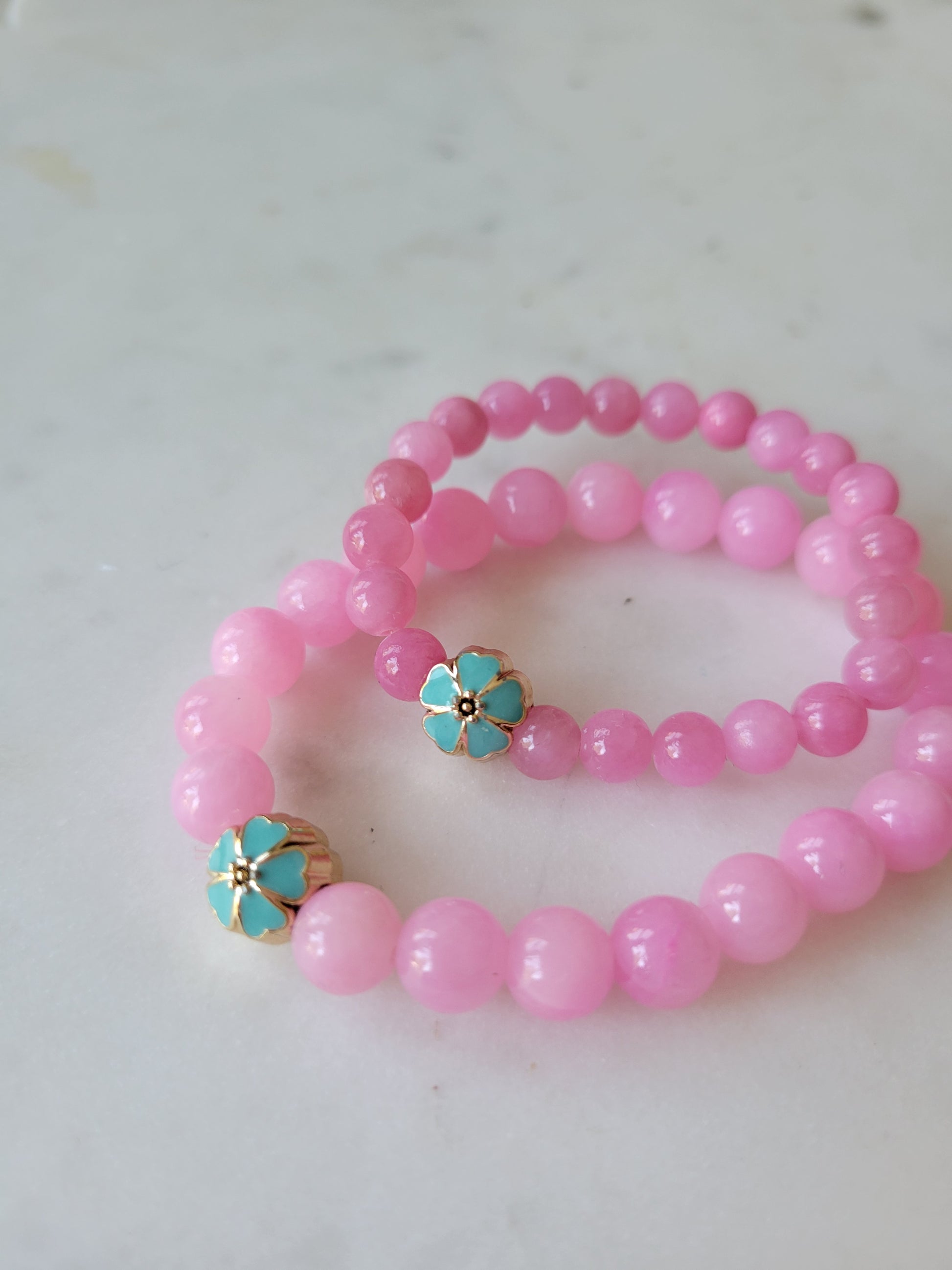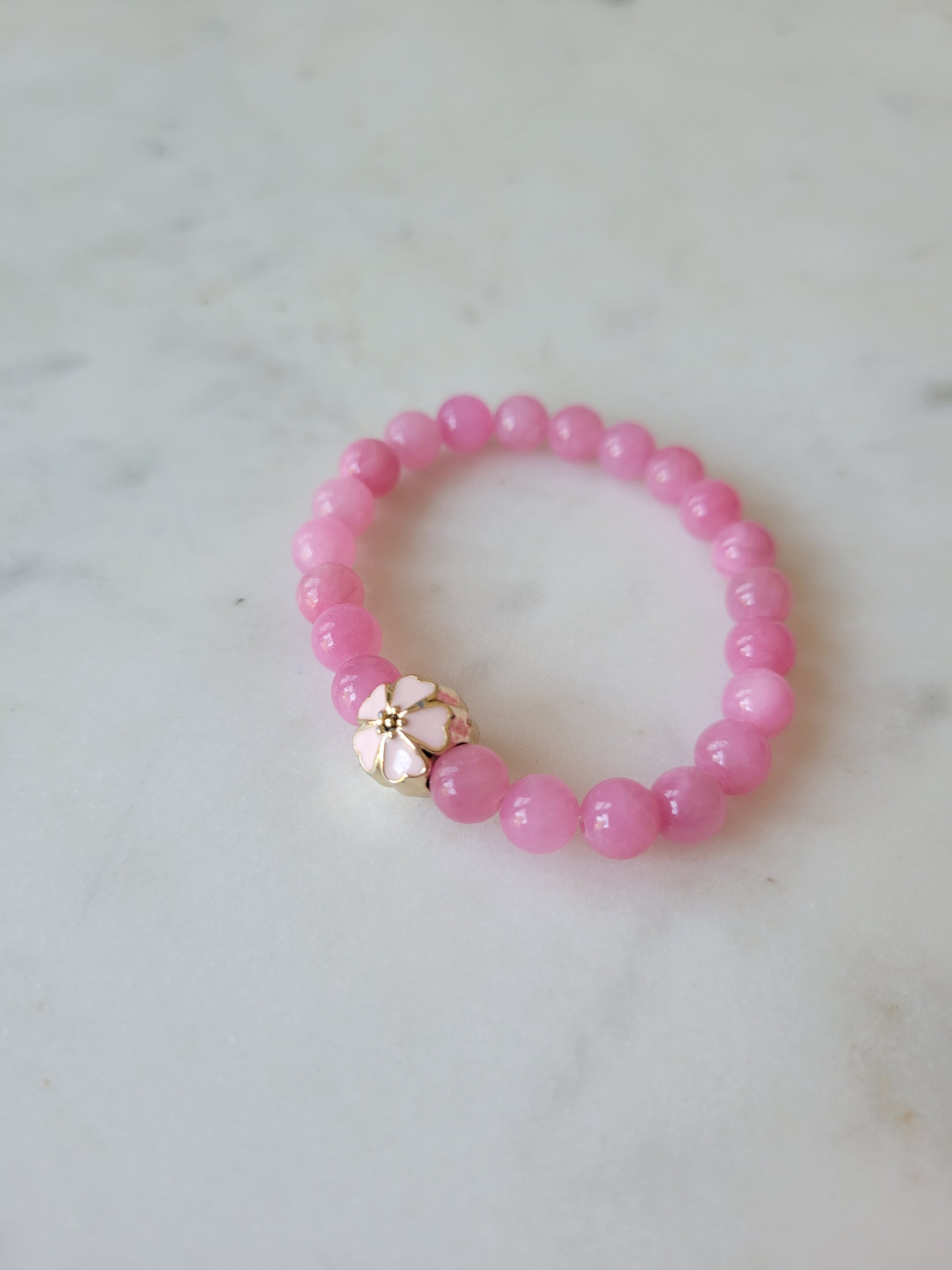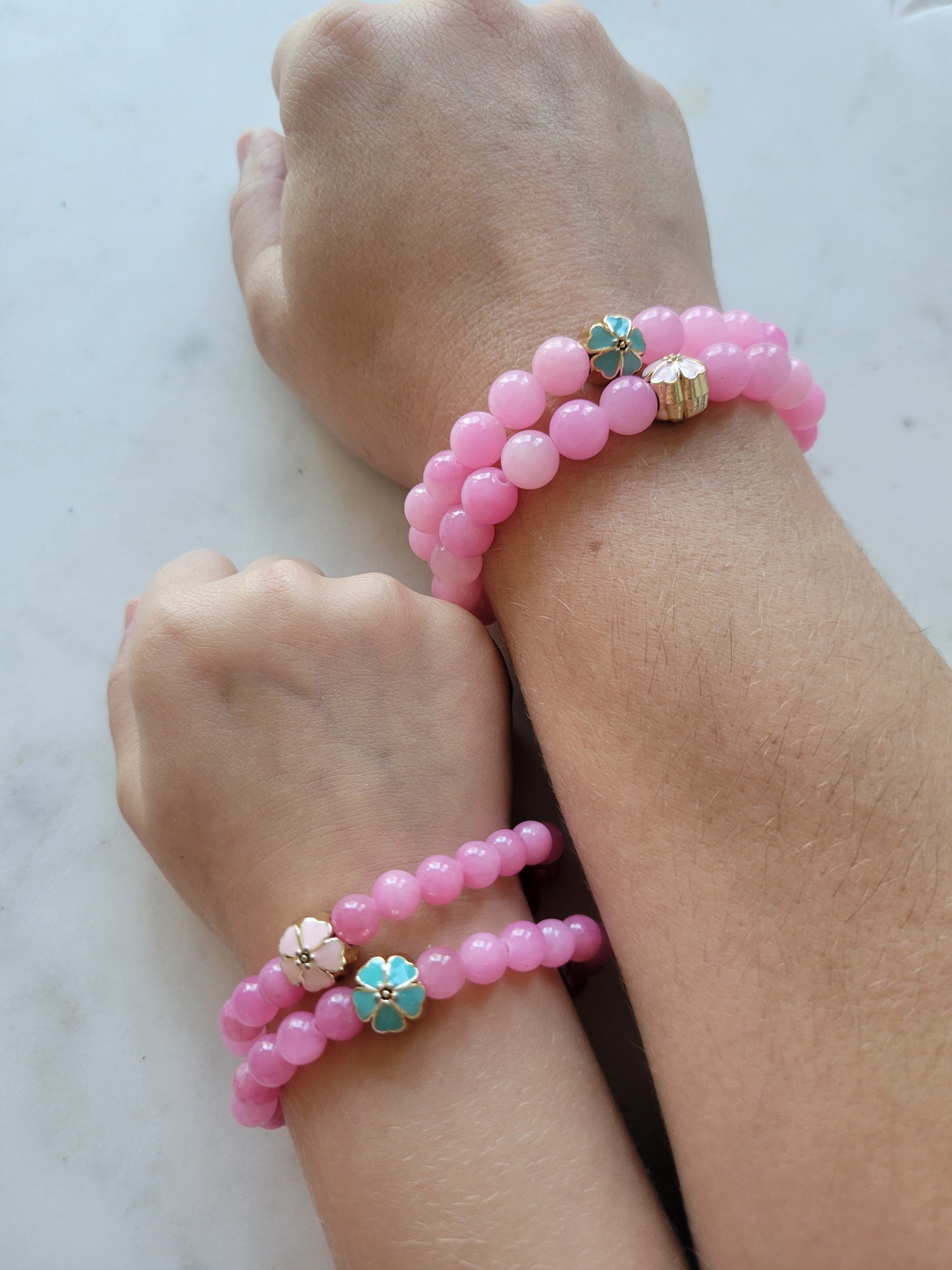 *Child's Size* Flower Child Stretchy Bracelet: Pink Jade