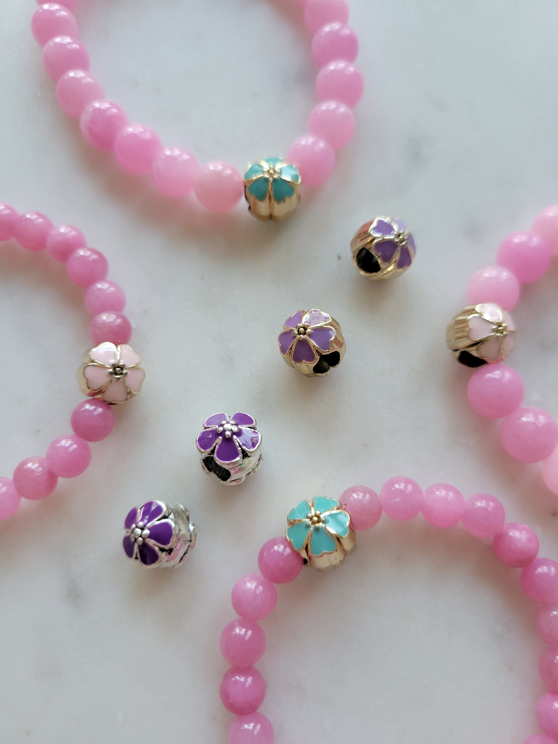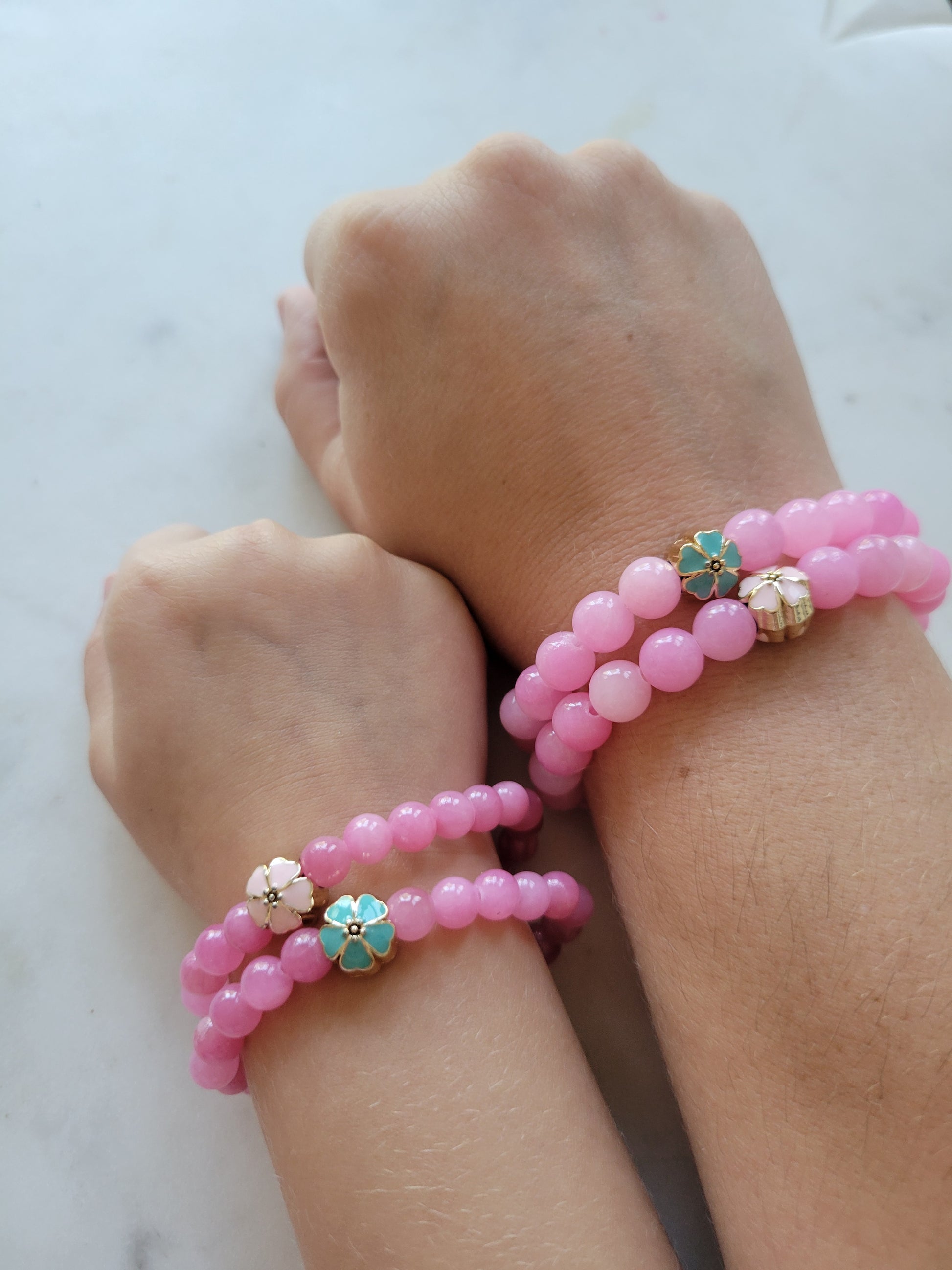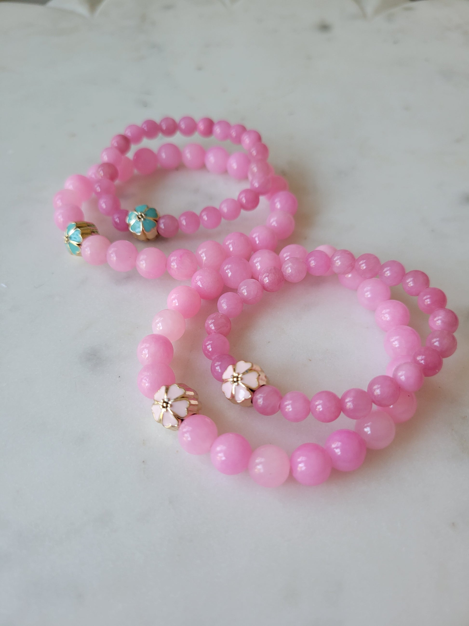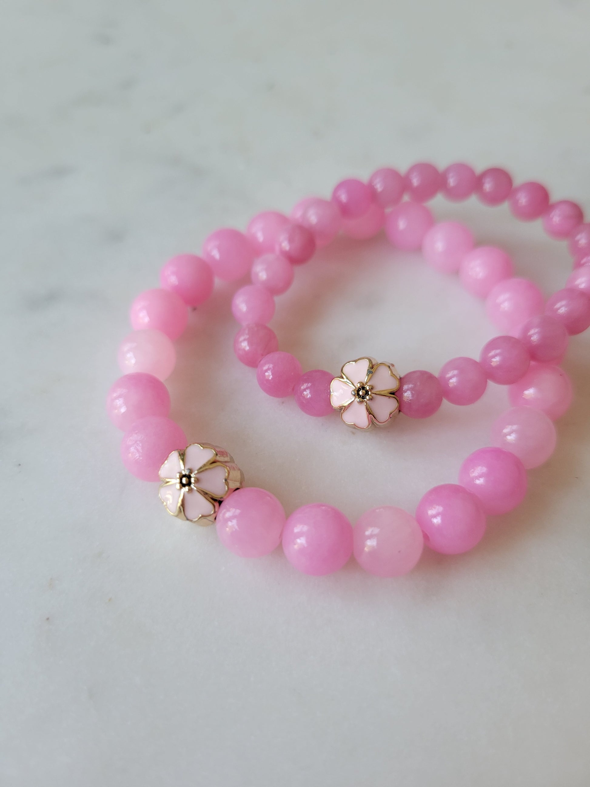 *Child's Size* Flower Child Stretchy Bracelet: Pink Jade