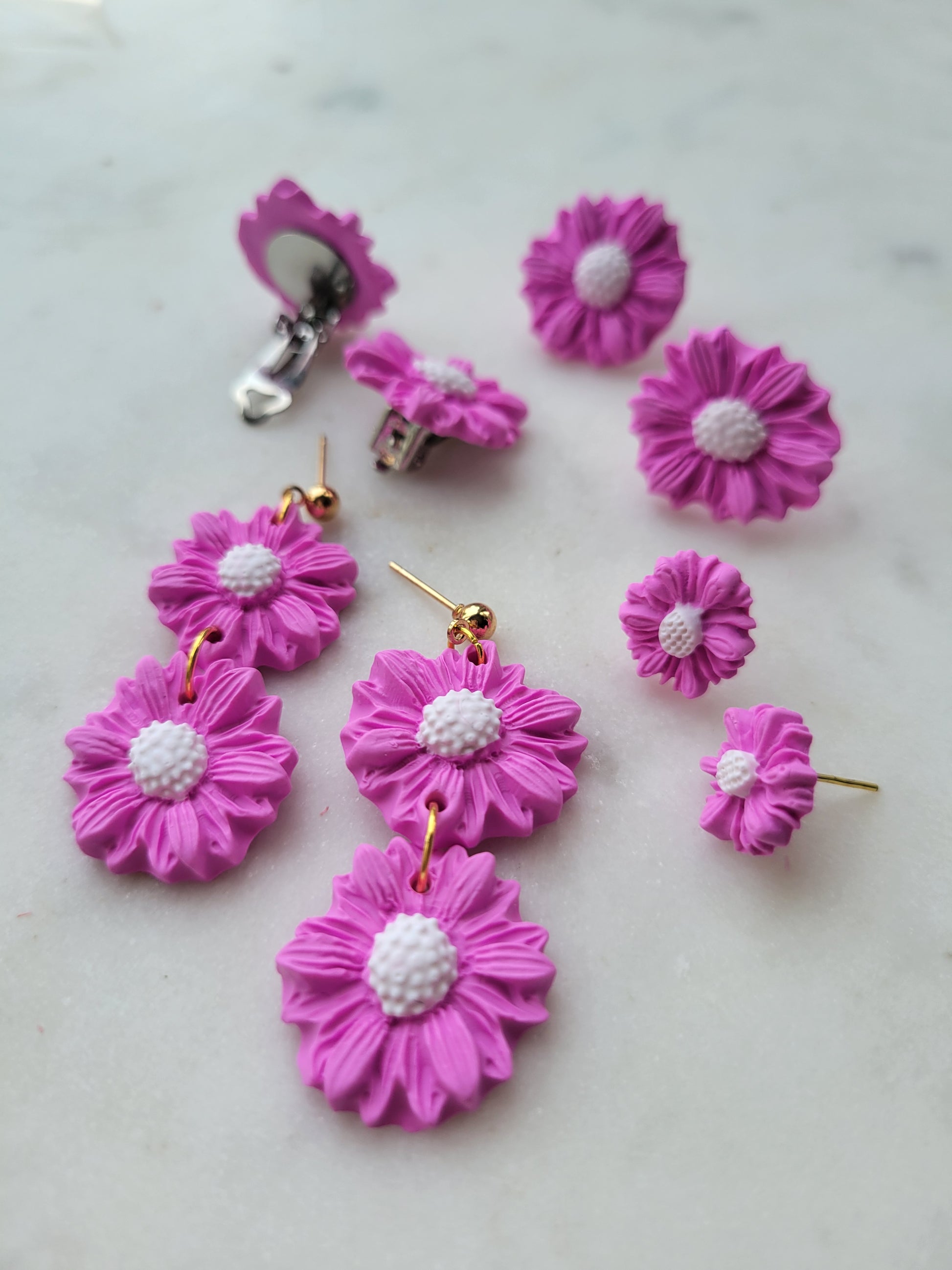 Elevate your style with handmade polymer clay earrings. Buy two or more from this collection and get 10% off. Perfect for coordinating Mama and daughters, sisters, and wedding parties. Each pair is a unique piece of wearable art.