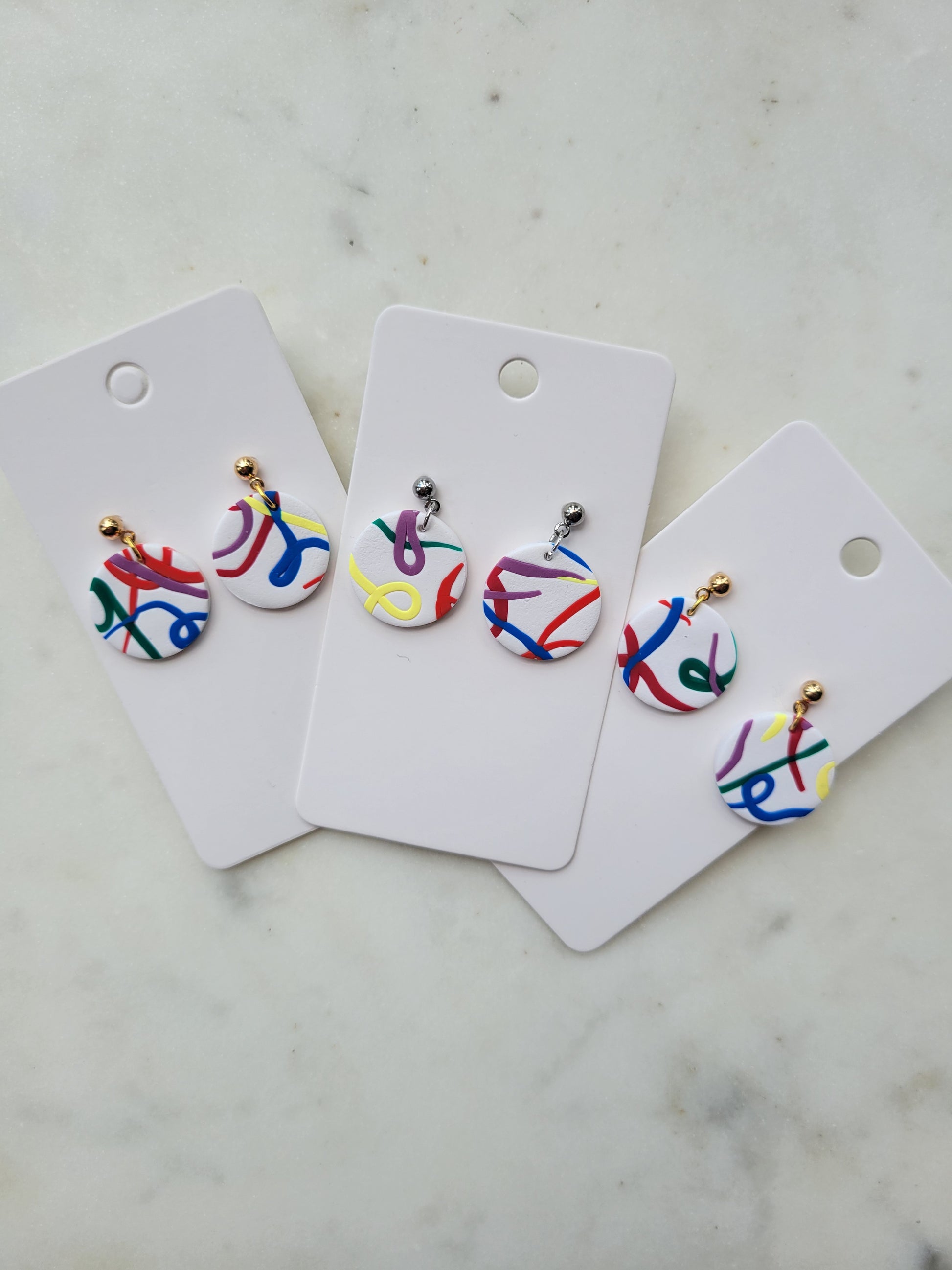 These handmade earrings are very lightweight and made of clay and nickle-free hardware.