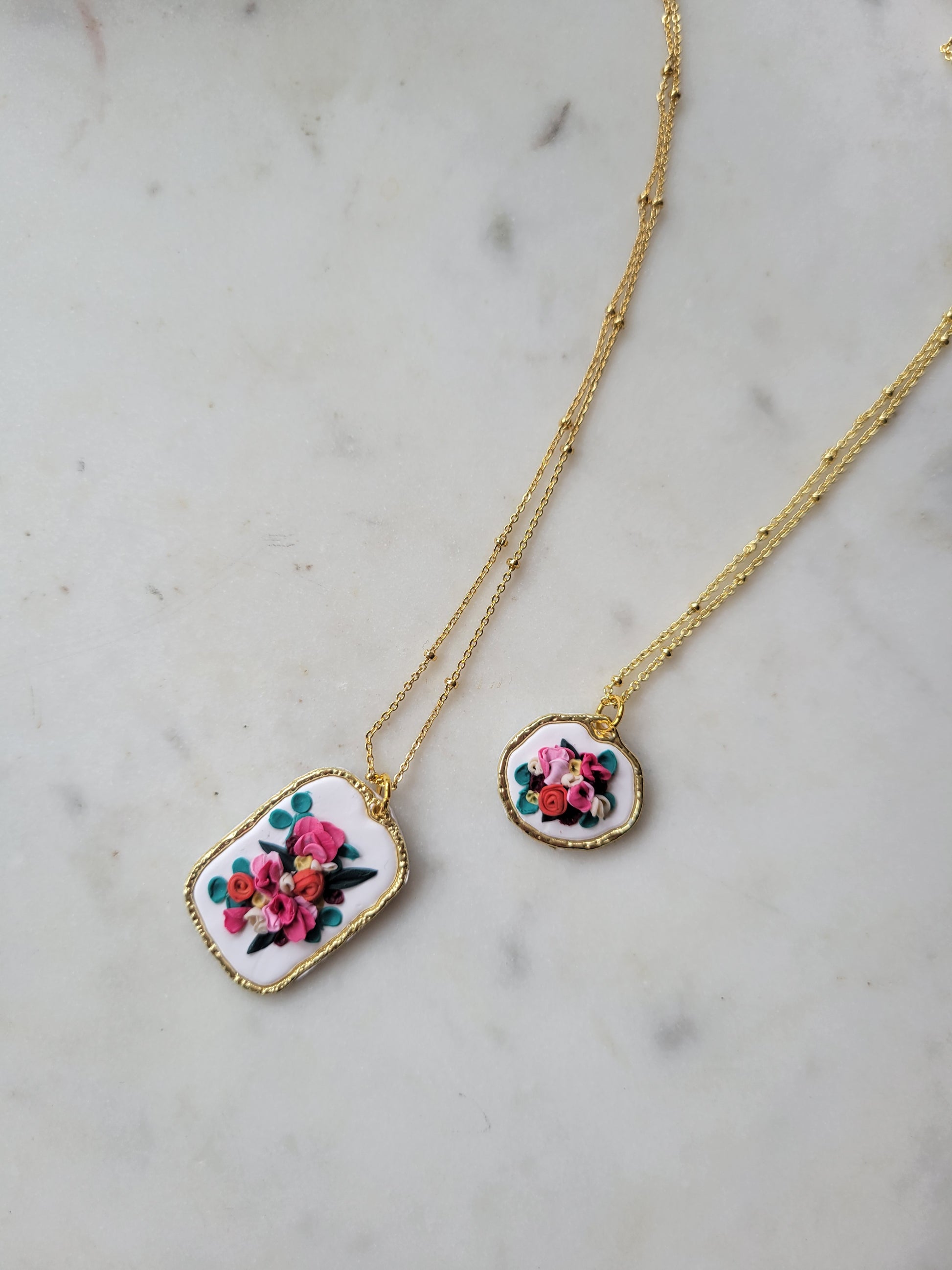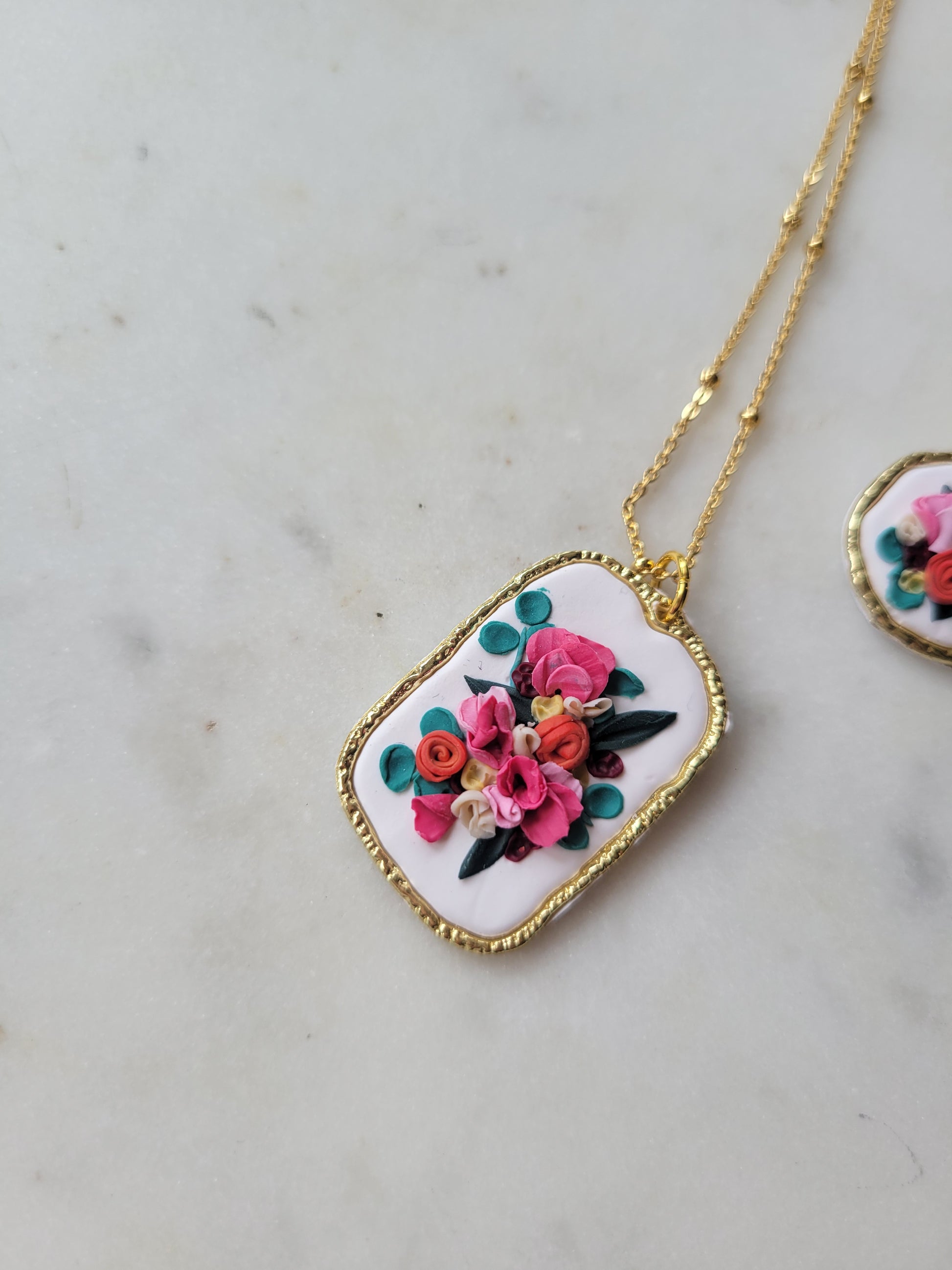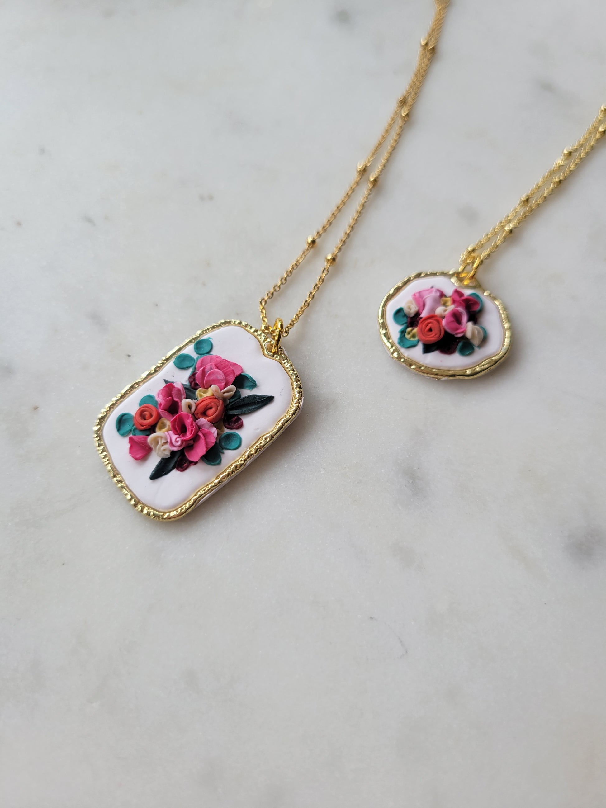 One-of-a-Kind Handcrafted Clay Floral Necklace