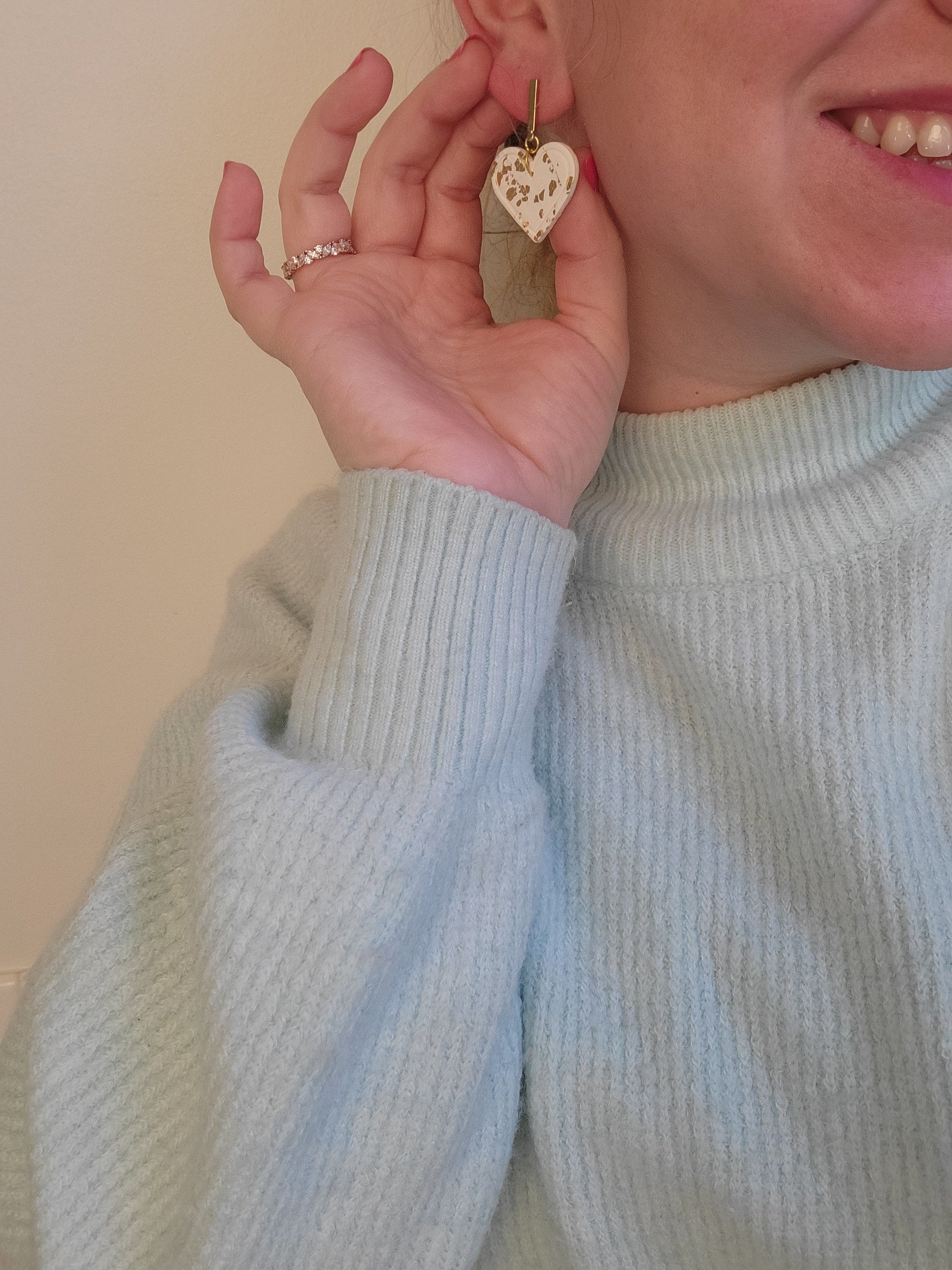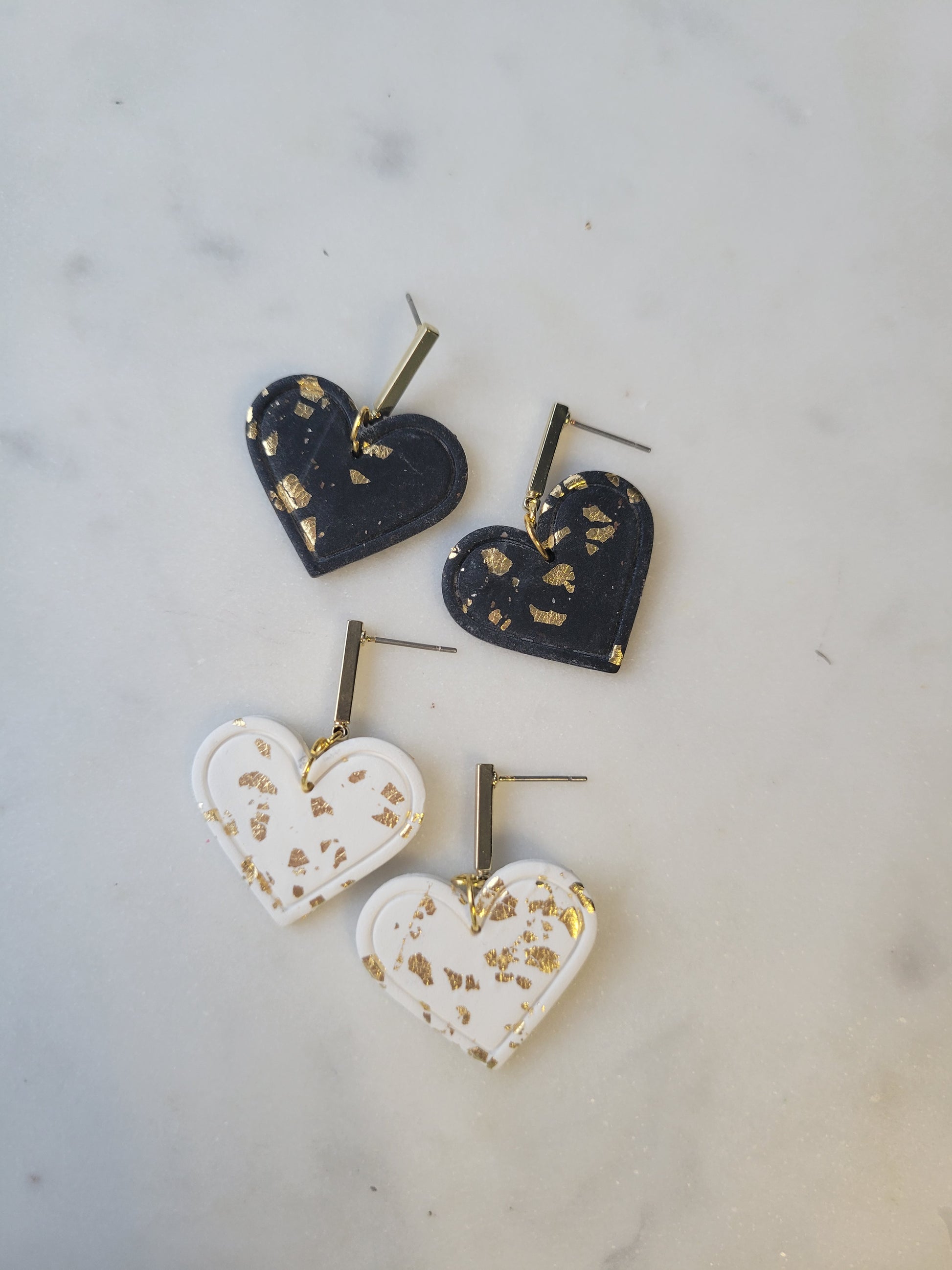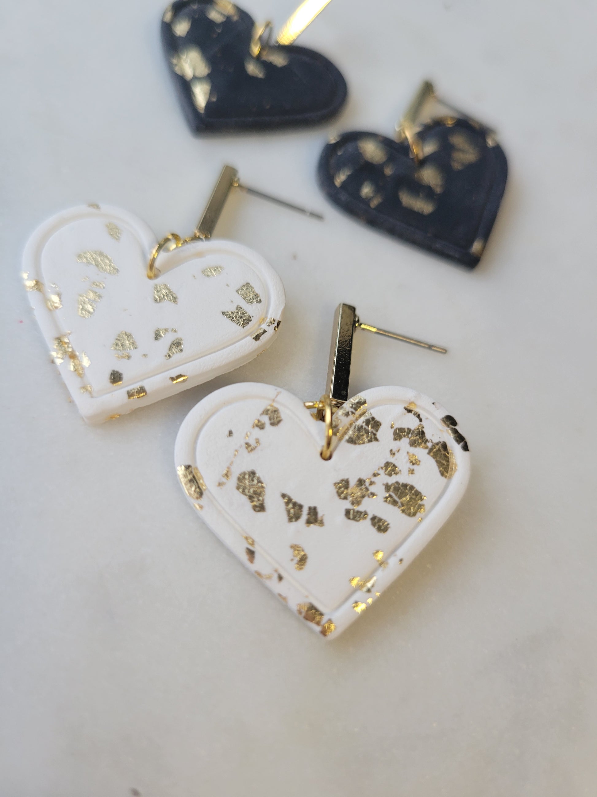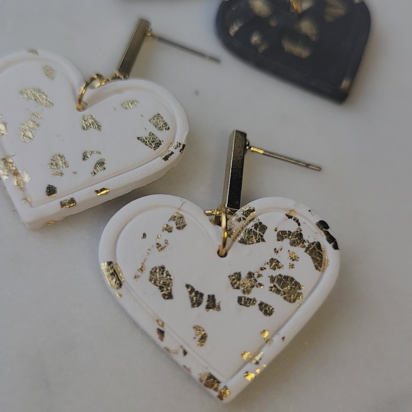 Materials: These earrings are extremely lightweight. They are made with polymer clay, gold leaf, and the finding [post] is brass.
