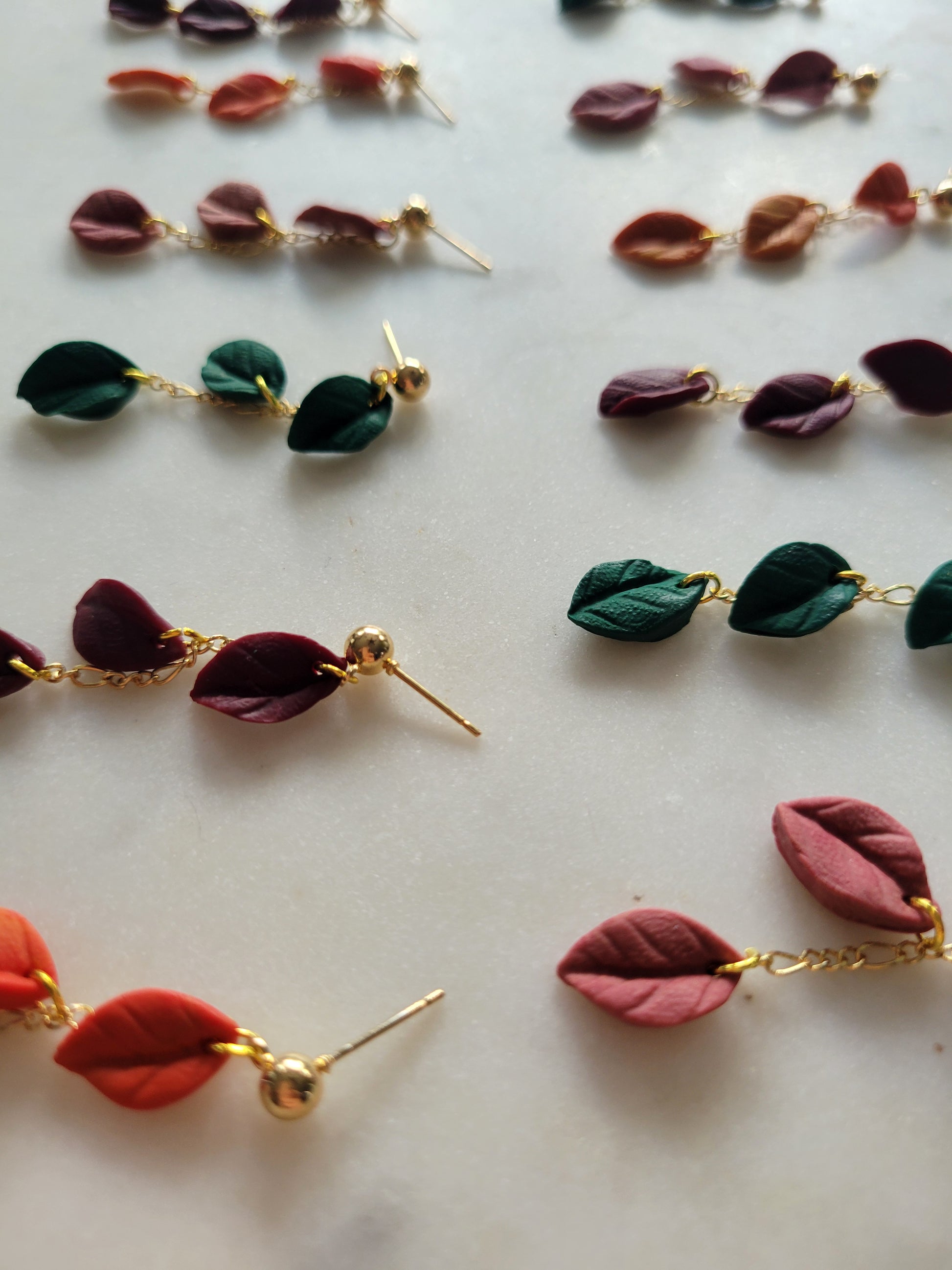 This style is perfect for plant lovers- the individual leaves are textured and layered in these beautiful dangling earrings that move with you.