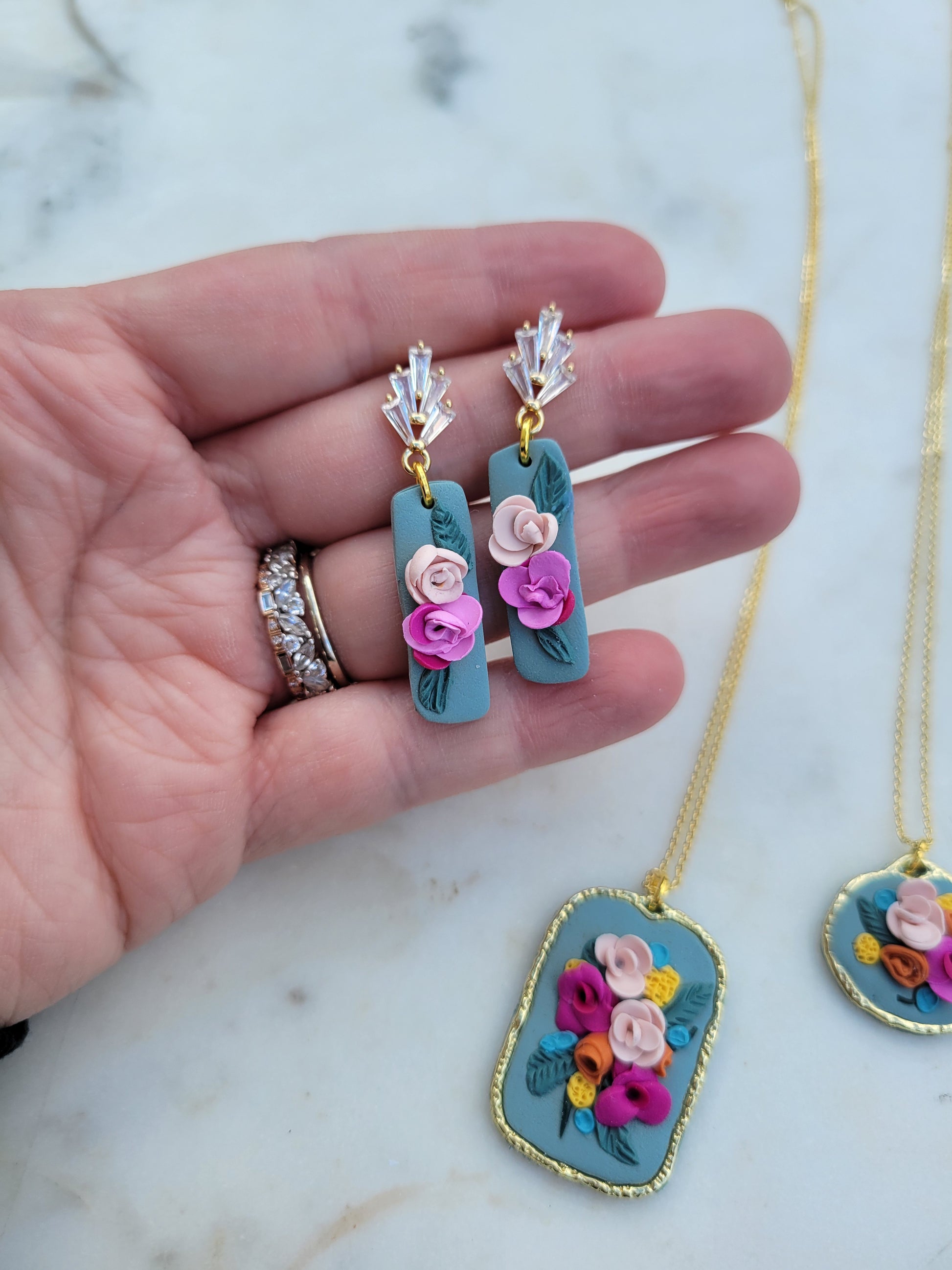 Each piece is unique but this bouquet style comes in different size options bringing beautiful whimsy and color to any outfit.