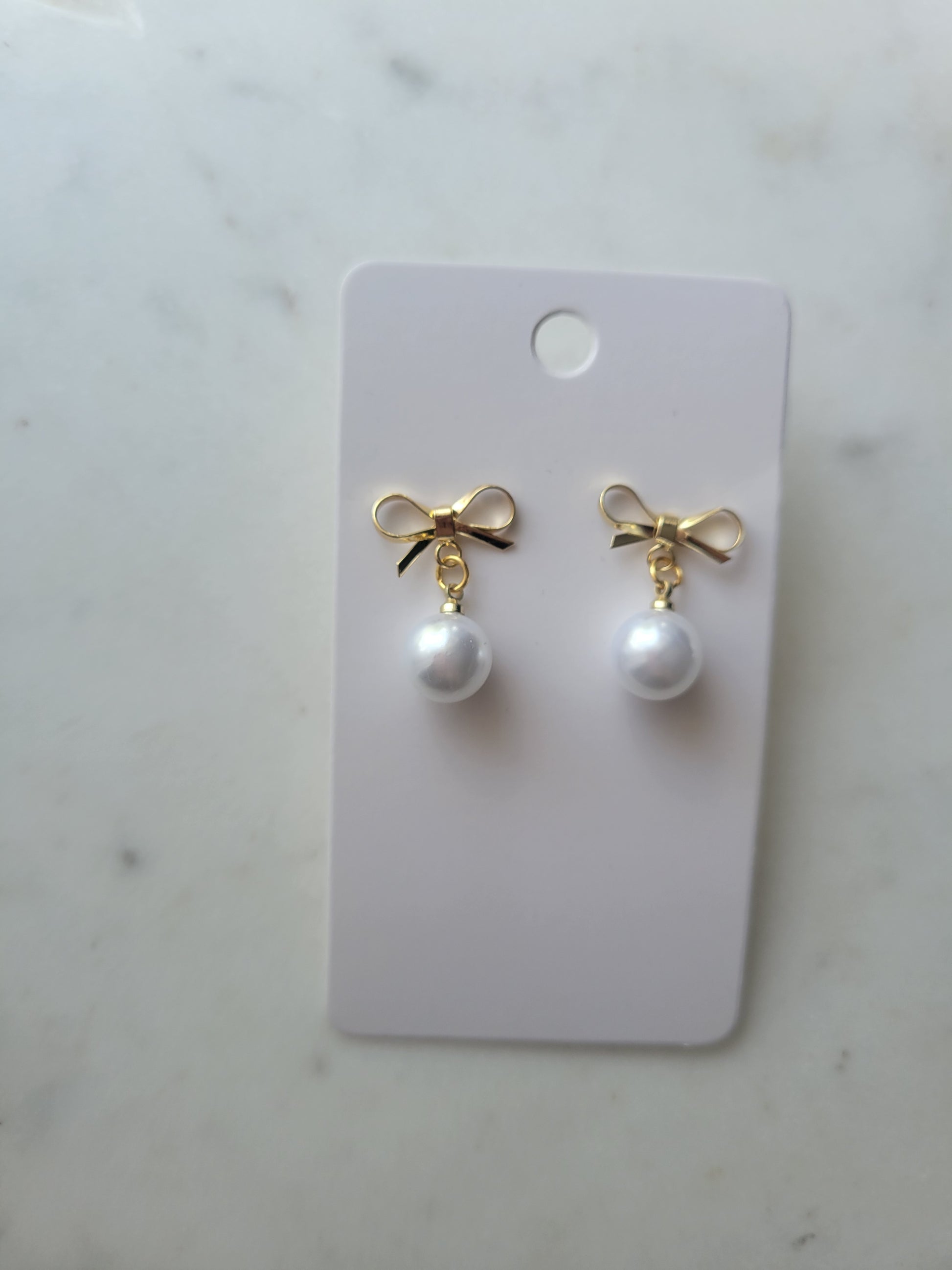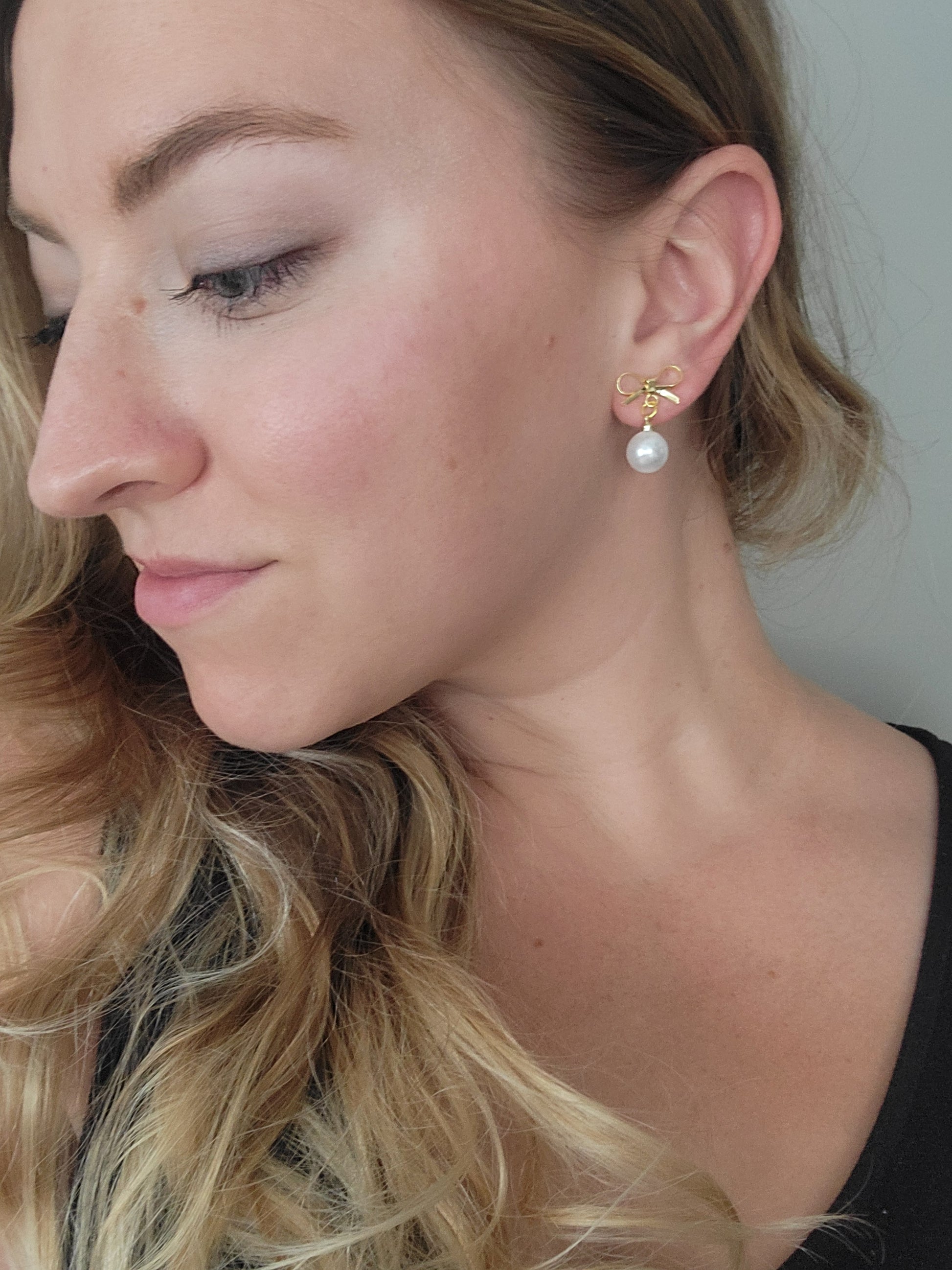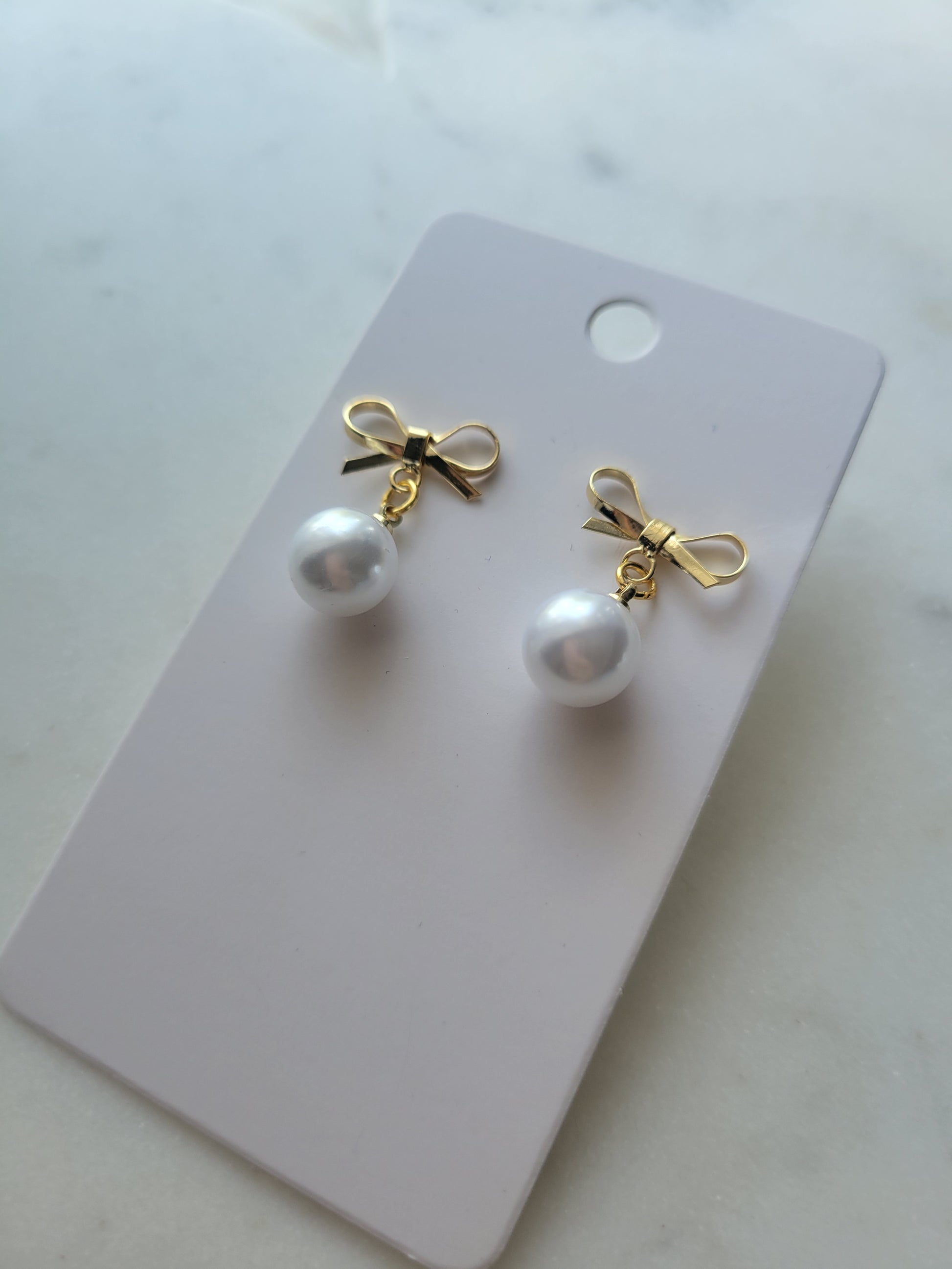 Sweet, dainty bows with a round pearl dangling feel classical but whimsical.