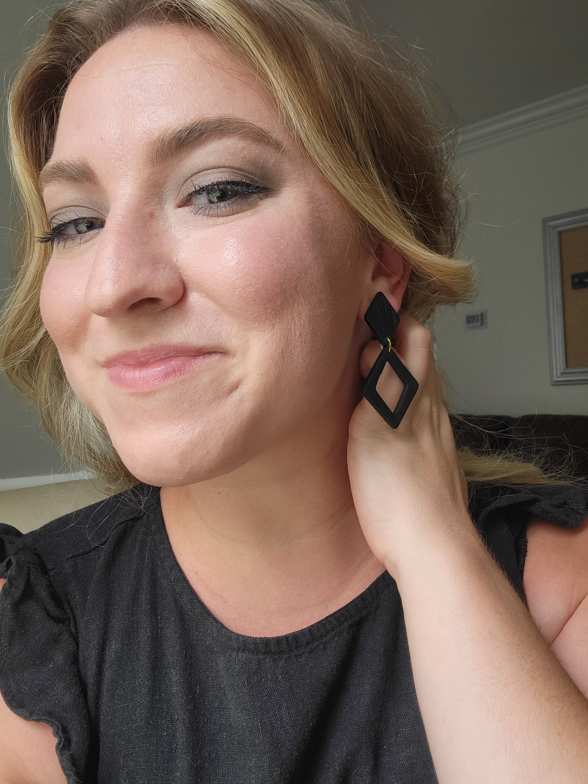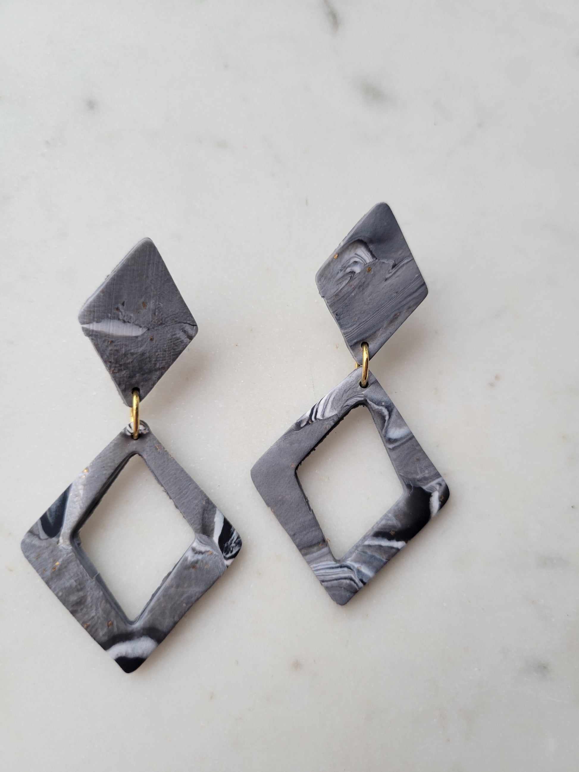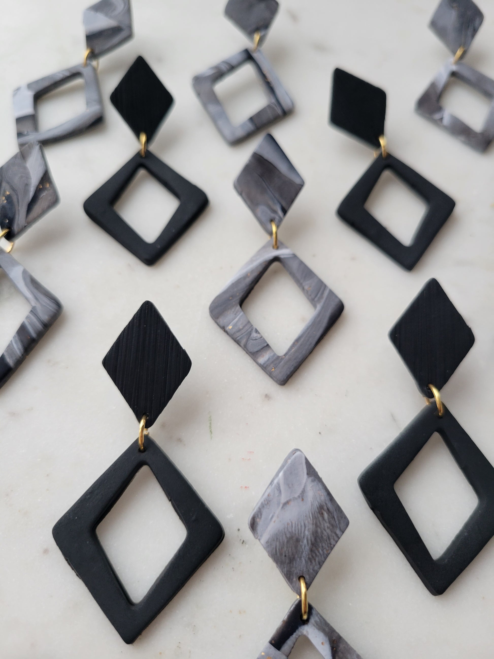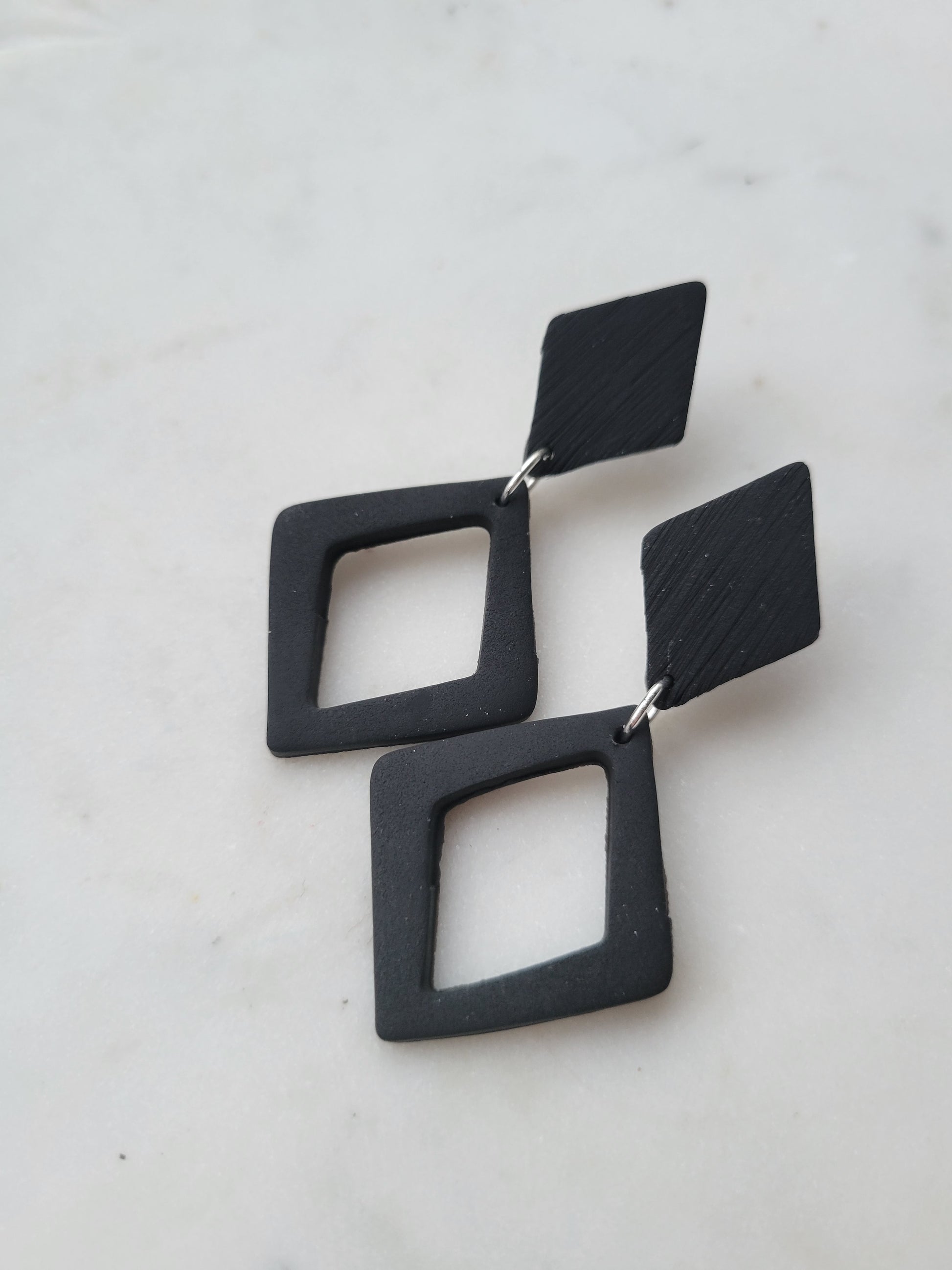 These handmade earrings are very lightweight and made of clay and nickle-free hardware.