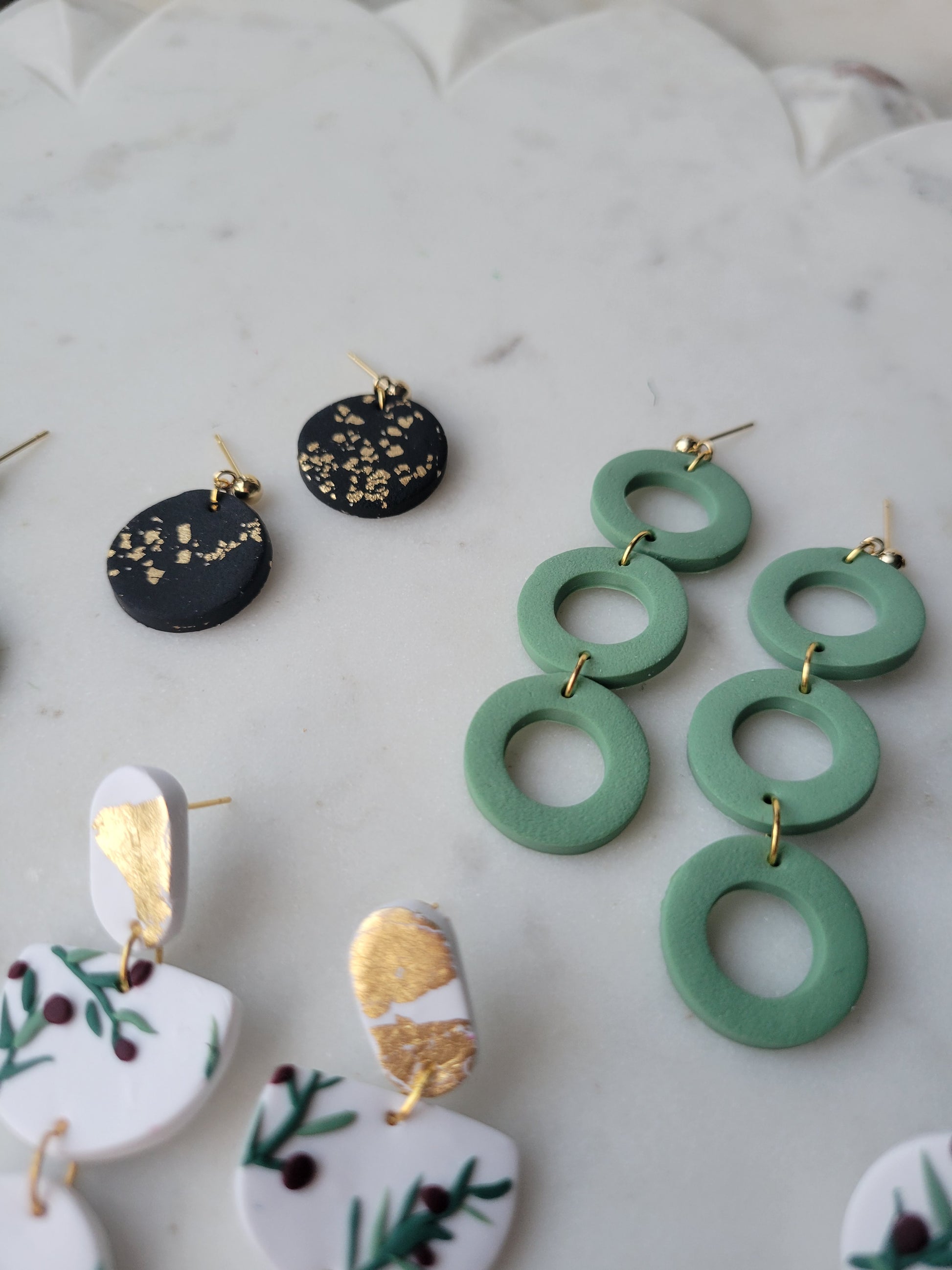 These handmade earrings are very lightweight and made of clay and nickle-free hardware.