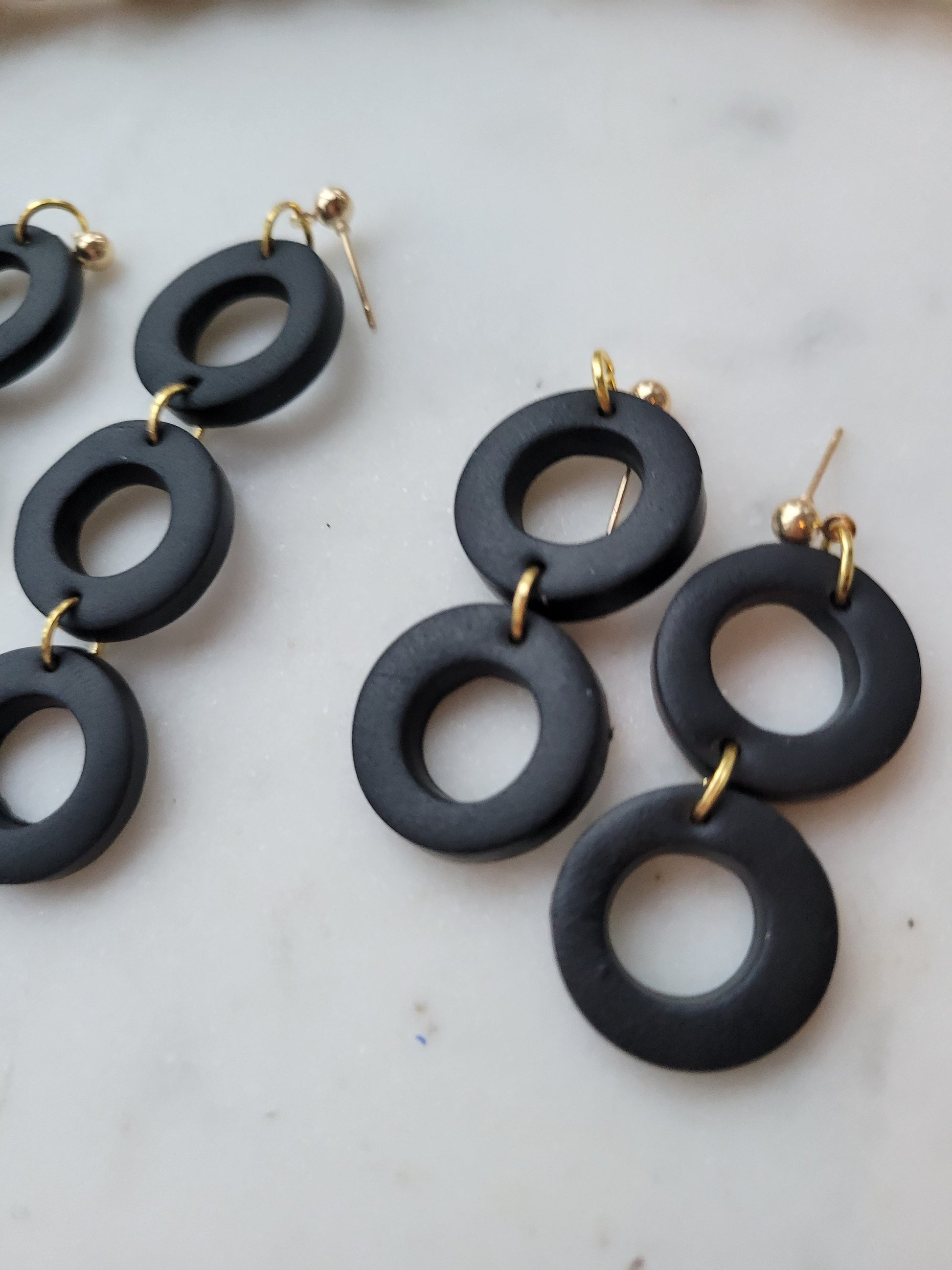 These handmade earrings are very lightweight and made of clay and nickle-free hardware.