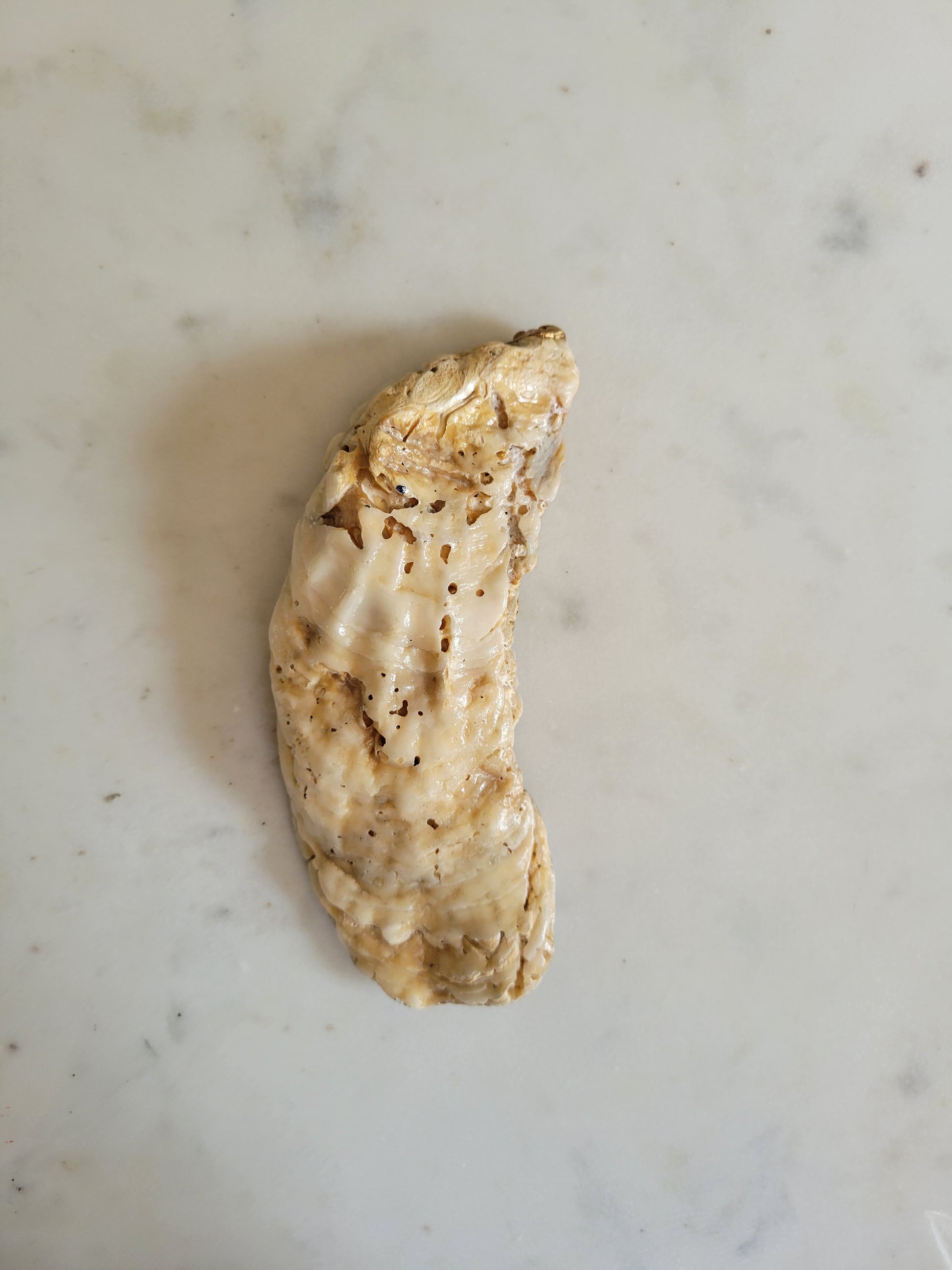 This large oyster shell was hand picked from the beaches of the Outer Banks. The lavender florals and leaves are hand painted with acrylics and embellished with gold.
