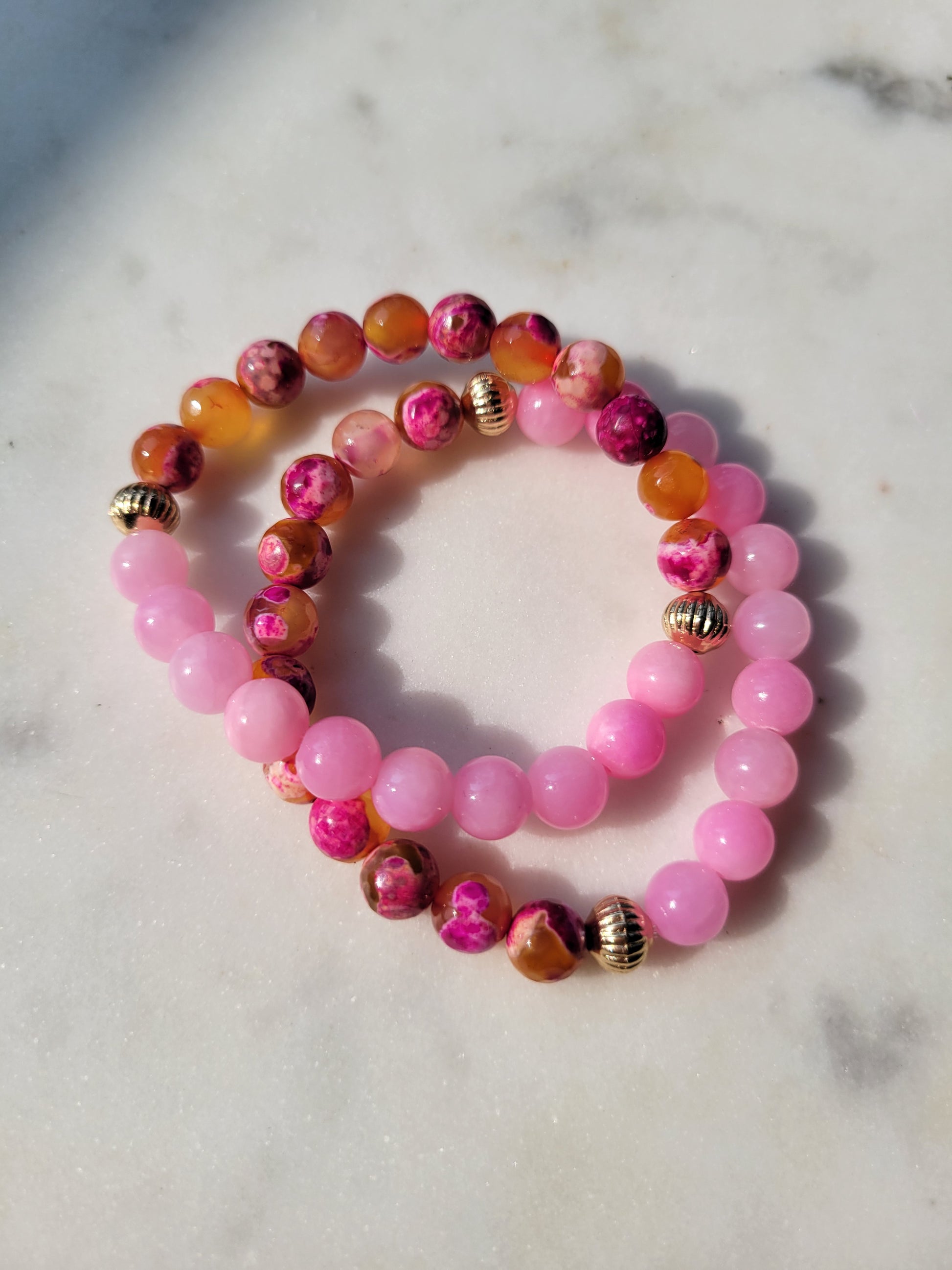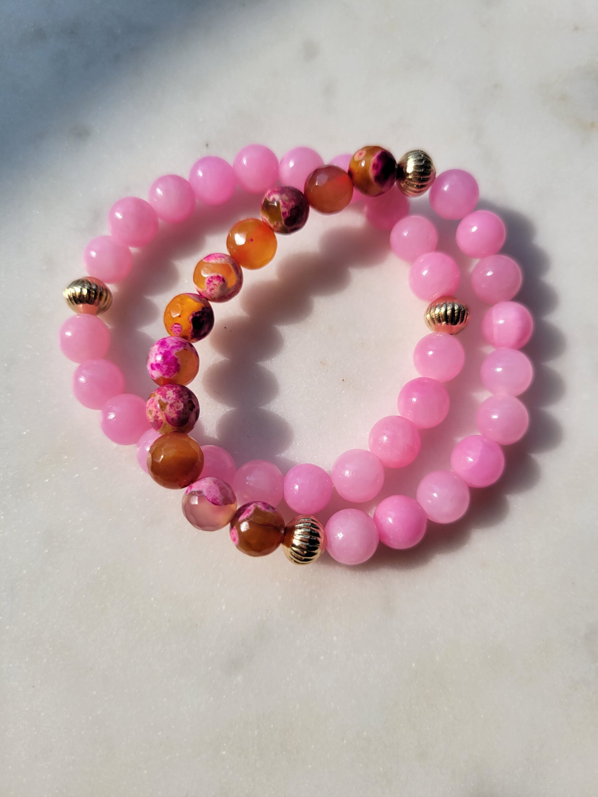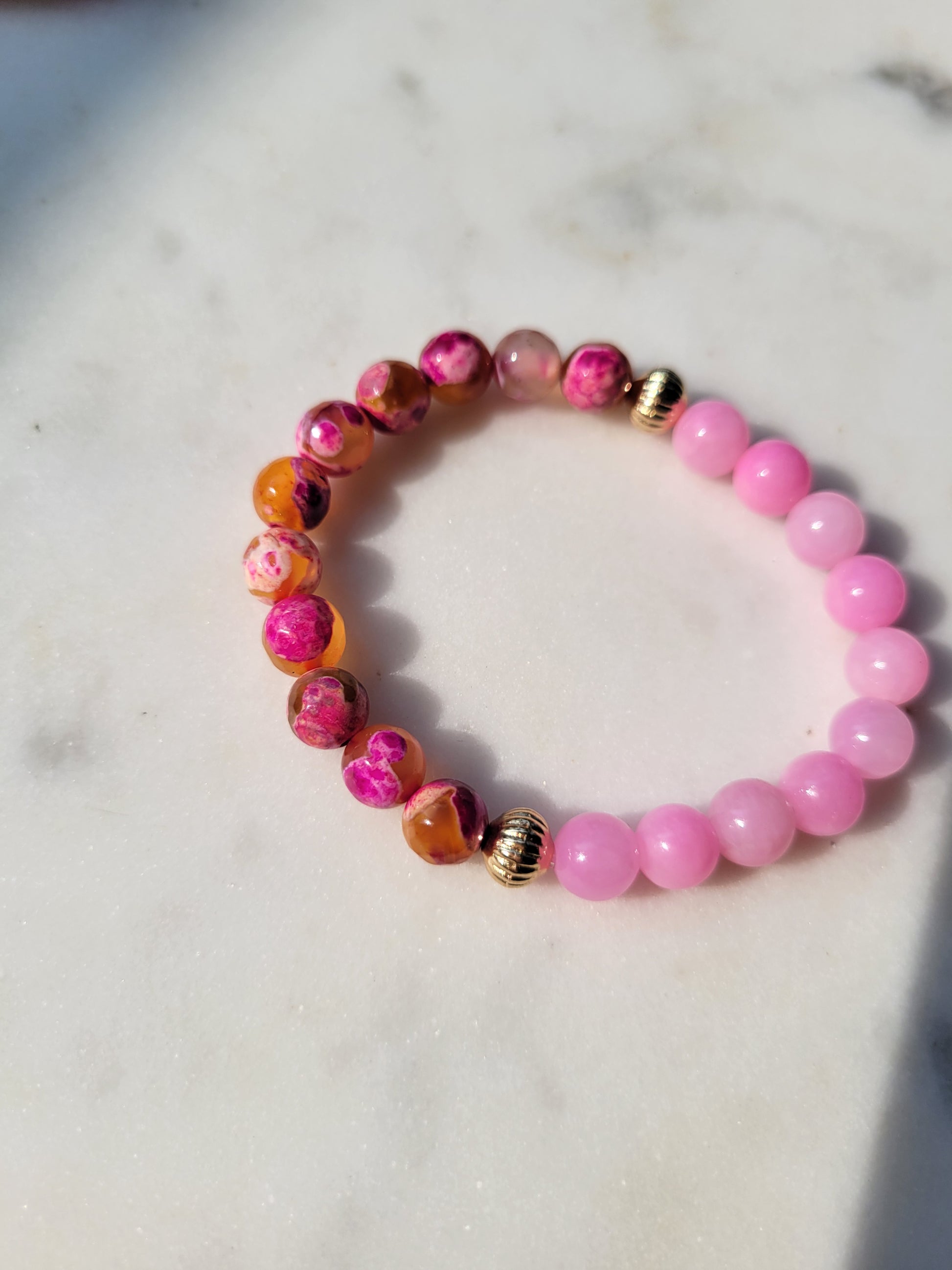 Pink Jade & Orange Fire Agate Beaded Bracelet