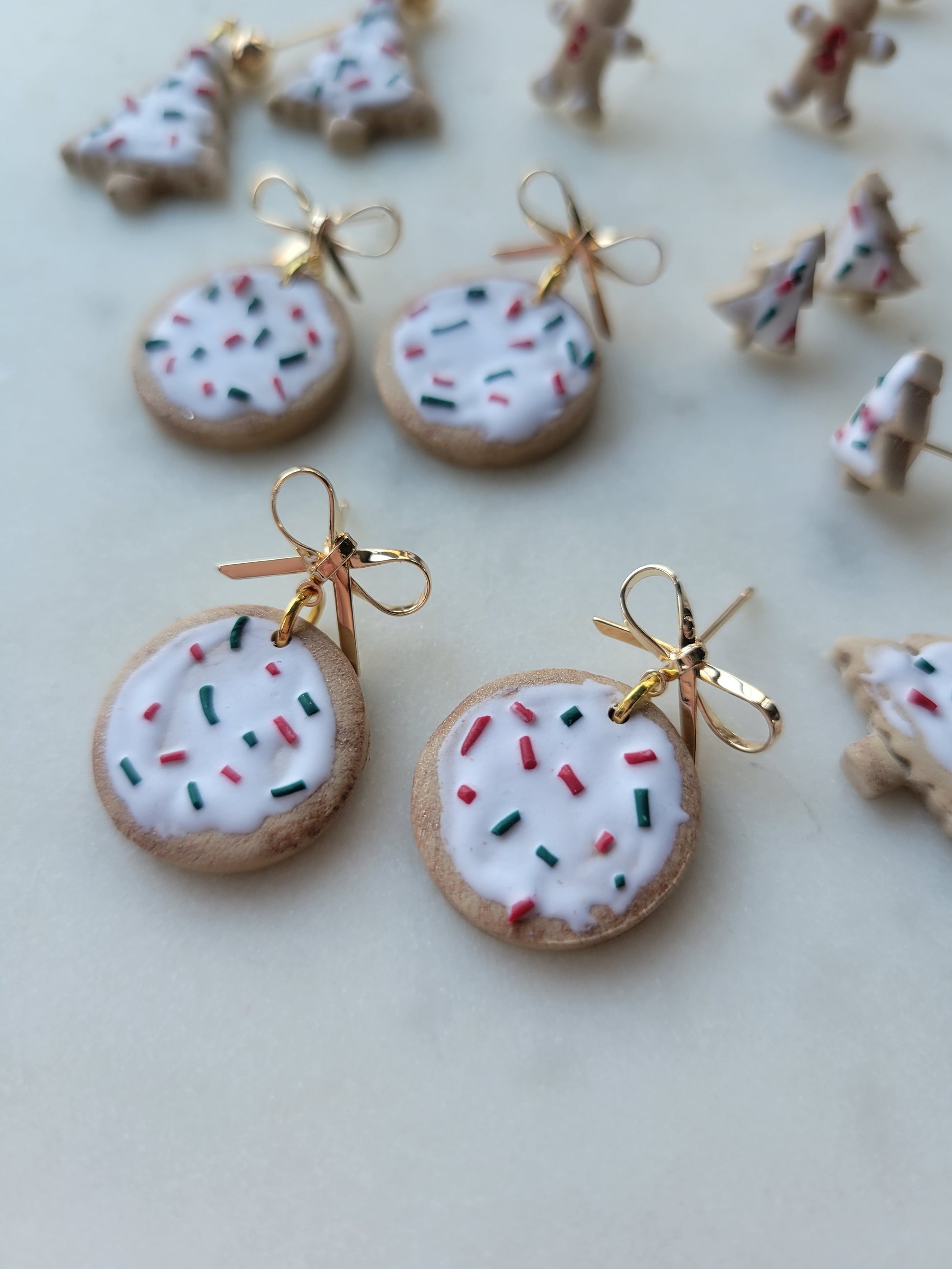 Celebrate the season with the sweetest iced cookies- these look good enough to eat! Choose between round cookies with a bow finding or classic trees!